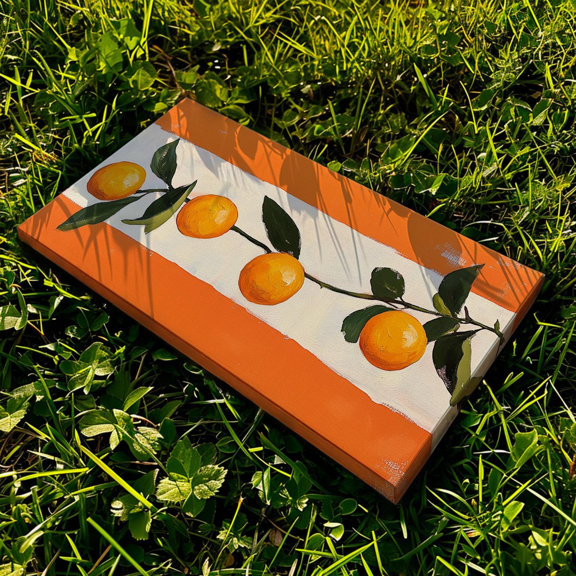 Abstract Orange Lanscape Citrus Fruit, 2x1 Farmhouse Kitchen Canvas Print, Vintage Style 20x60 Canvas Art