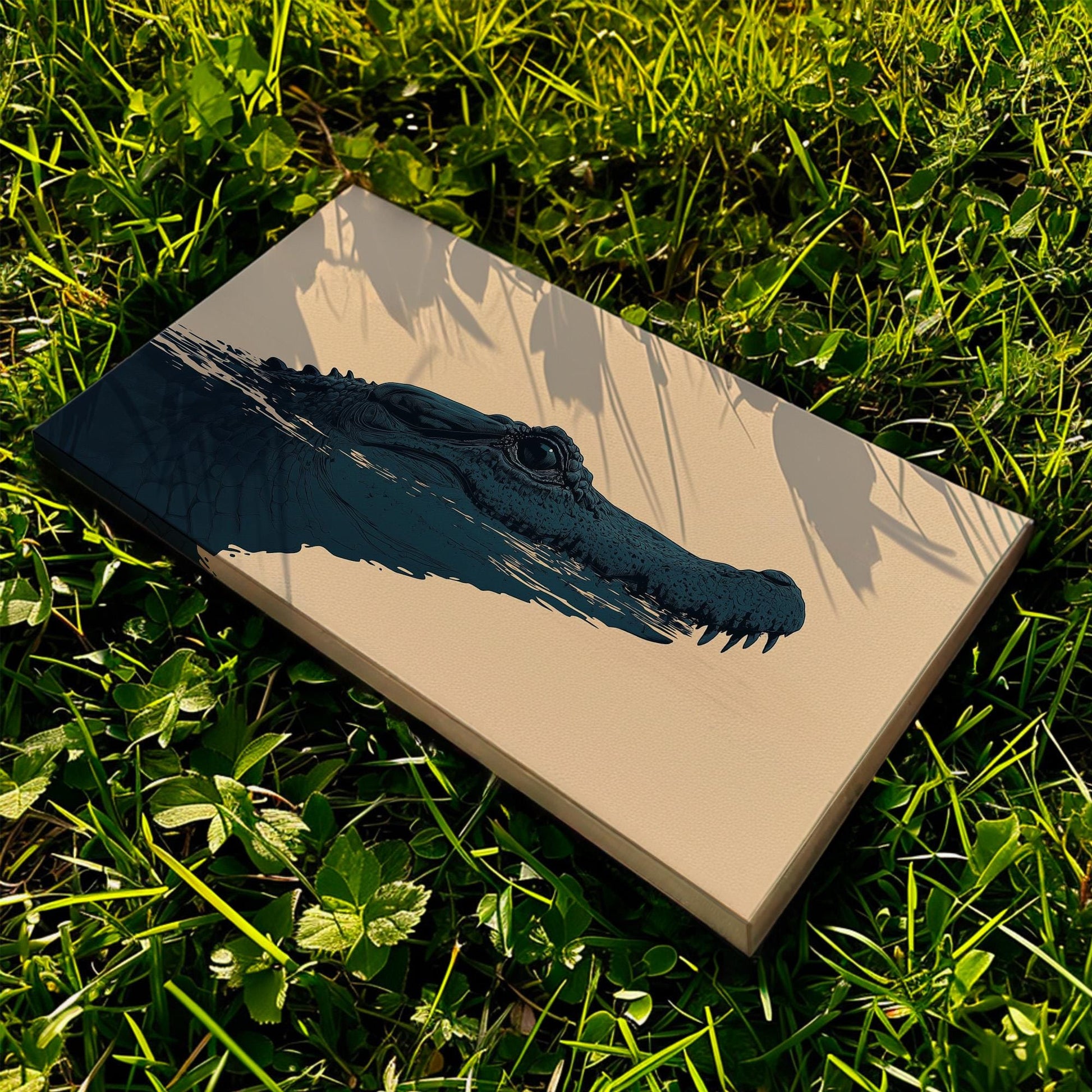 Alligator Illustration Wall Art For Bedroom, Horizontal Florida Art Canvas Print, Minimal Wildlife Decor Canvas Art