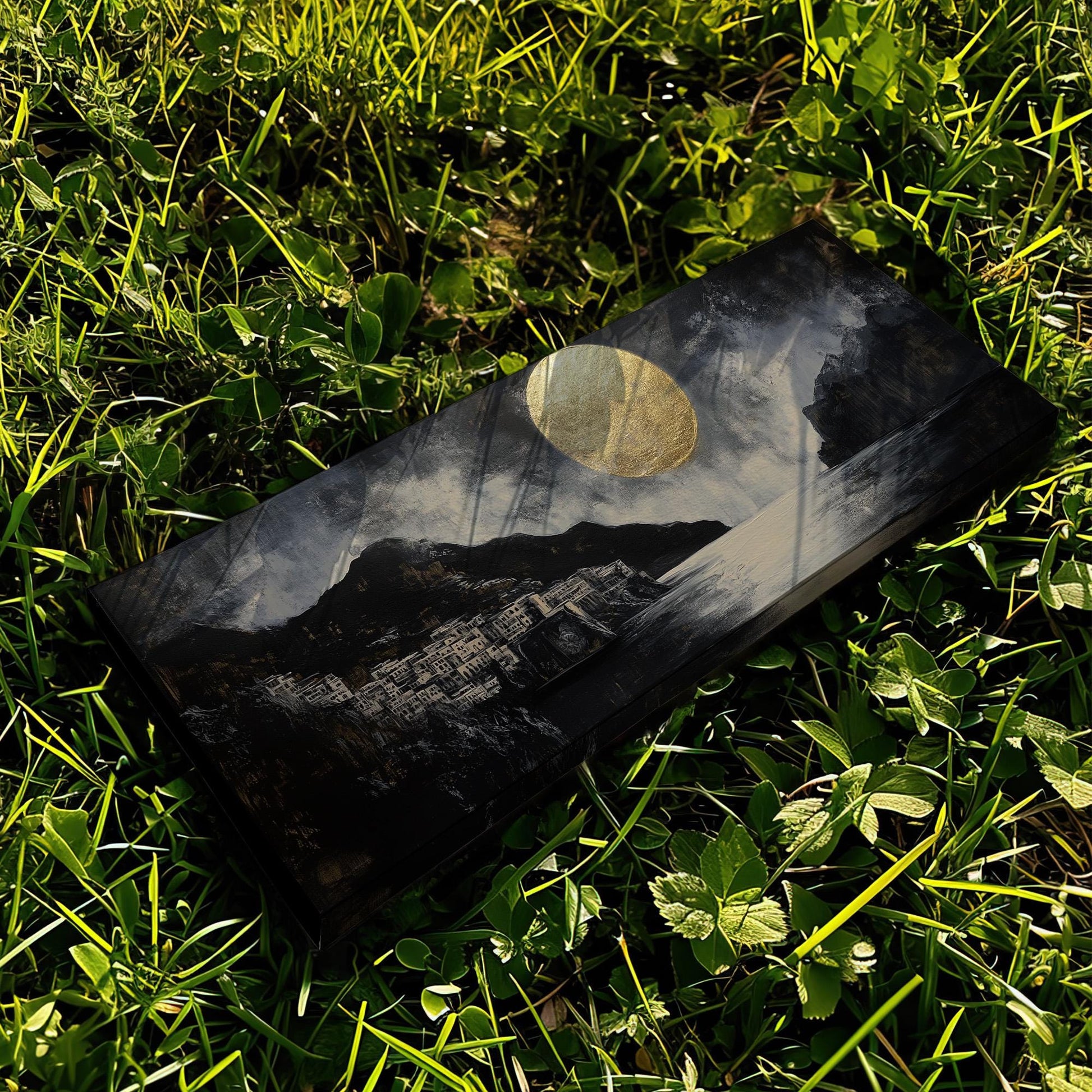 Amalfi Coast Full Moon Panoramic Art For Bedroom, Canvas Italian Wall Art Print, Coastal Decor Canvas Art