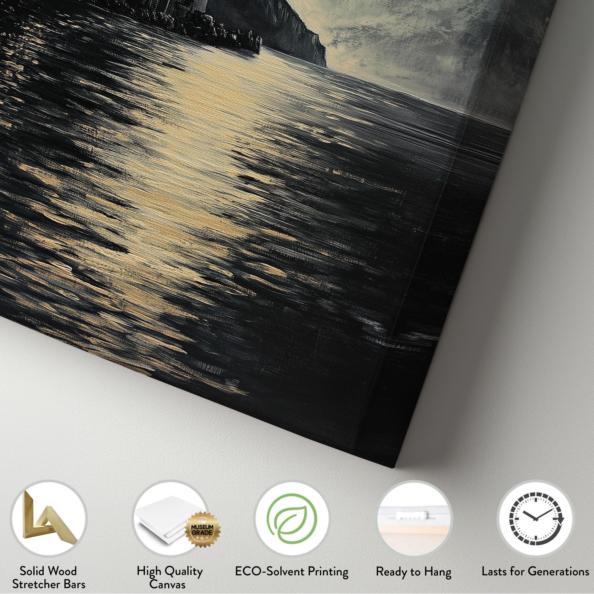 Amalfi Coast Huge Moon Wall Art For Living Room, Vertical Italian Canvas Print, Full Moon Decor Canvas Art