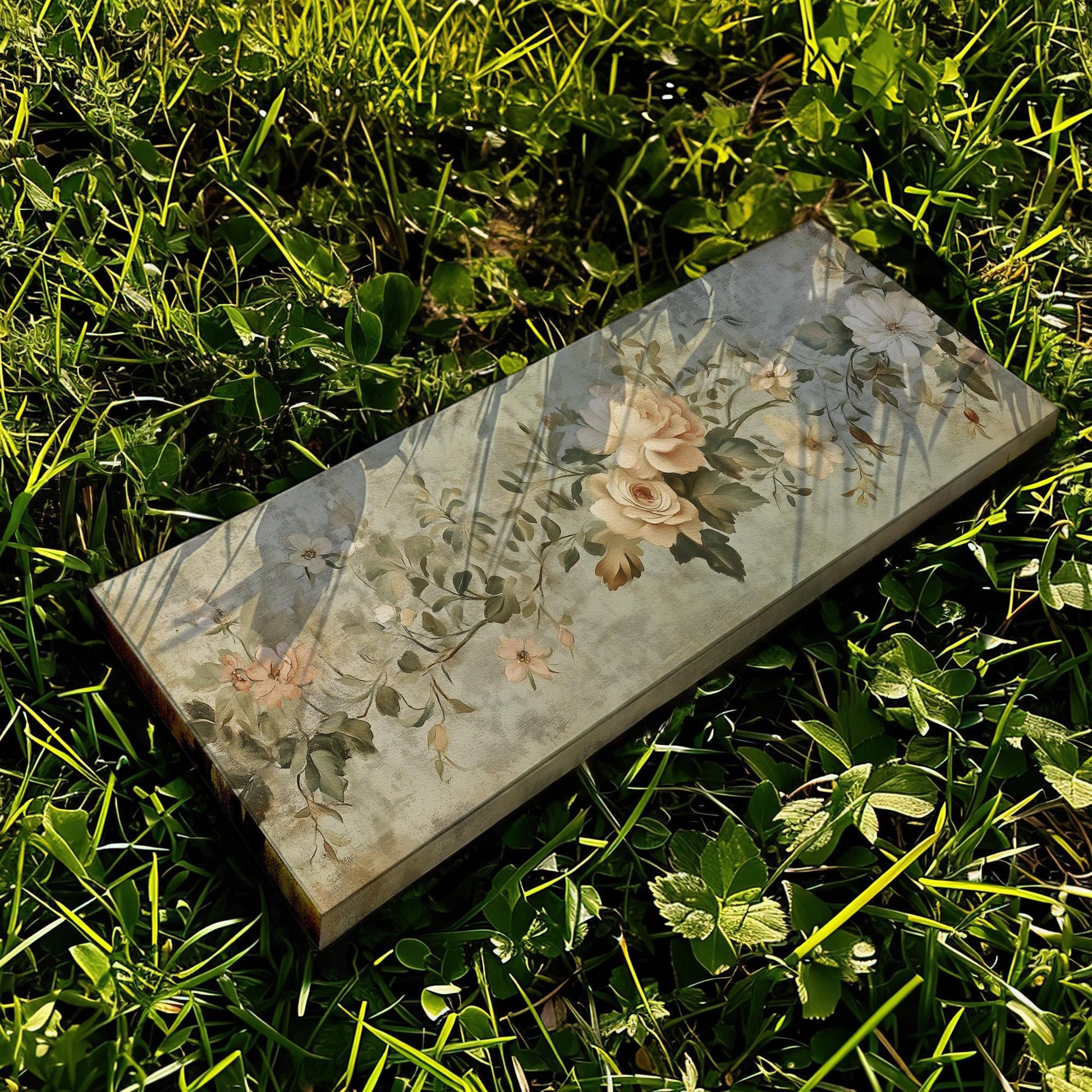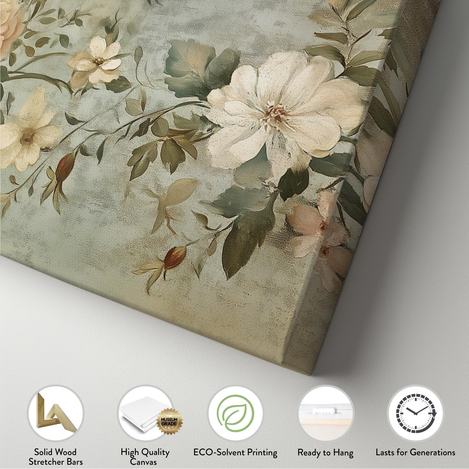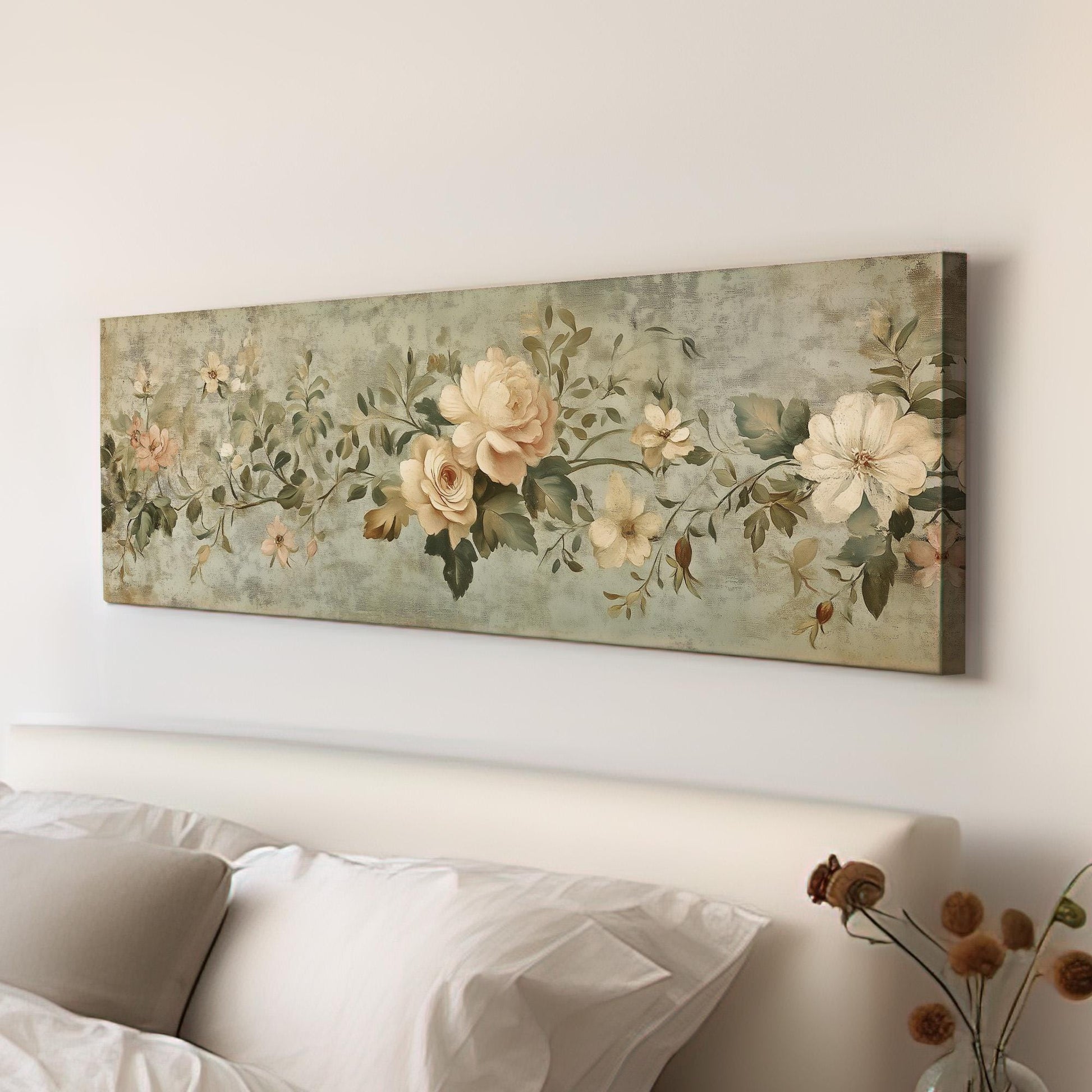 Antique Muted Flowers Panoramic Neutral Taperstry, Minimal Chrysanthemum Canvas Print, Floral Printed Canvas Art