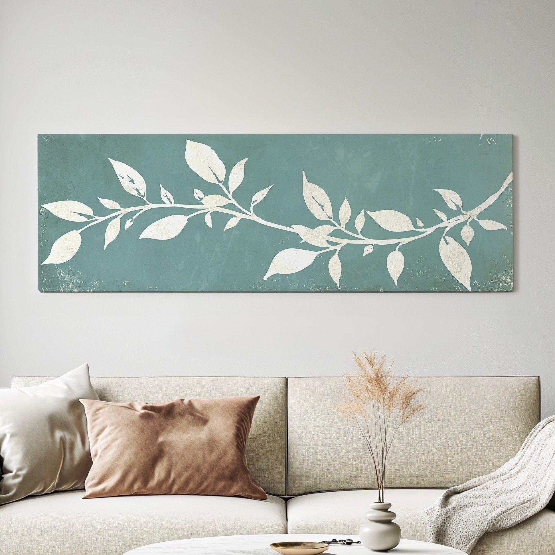 Basil Long Horizontal Wall Art For Kitchen, Panoramic Botanical Canvas Print, Sage Green Decor Canvas Art