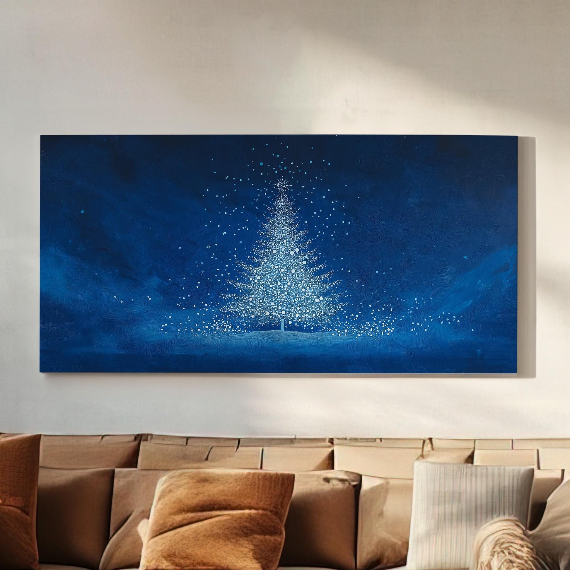 Blue Christmas Tree Canvas Wall Art For Living Room, Landscape Winter Canvas Print, Farmhouse Large Canvas Art