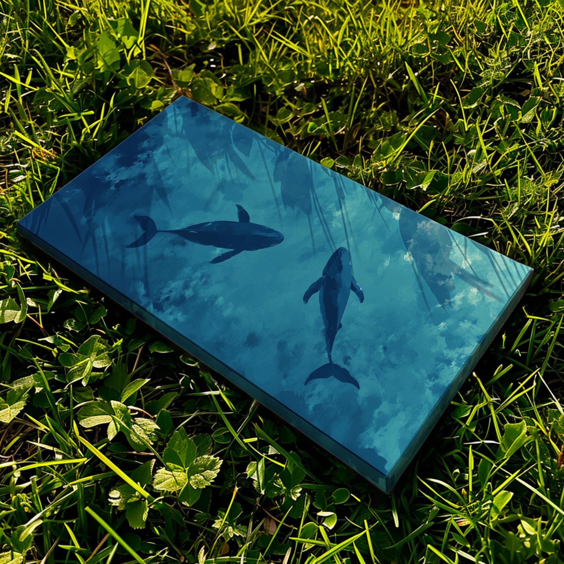 Blue Whale Couple Wall Art For Bedroom, Horizontal Nursery Ocean Canvas Print, Minimalist Blue Decor Canvas Art