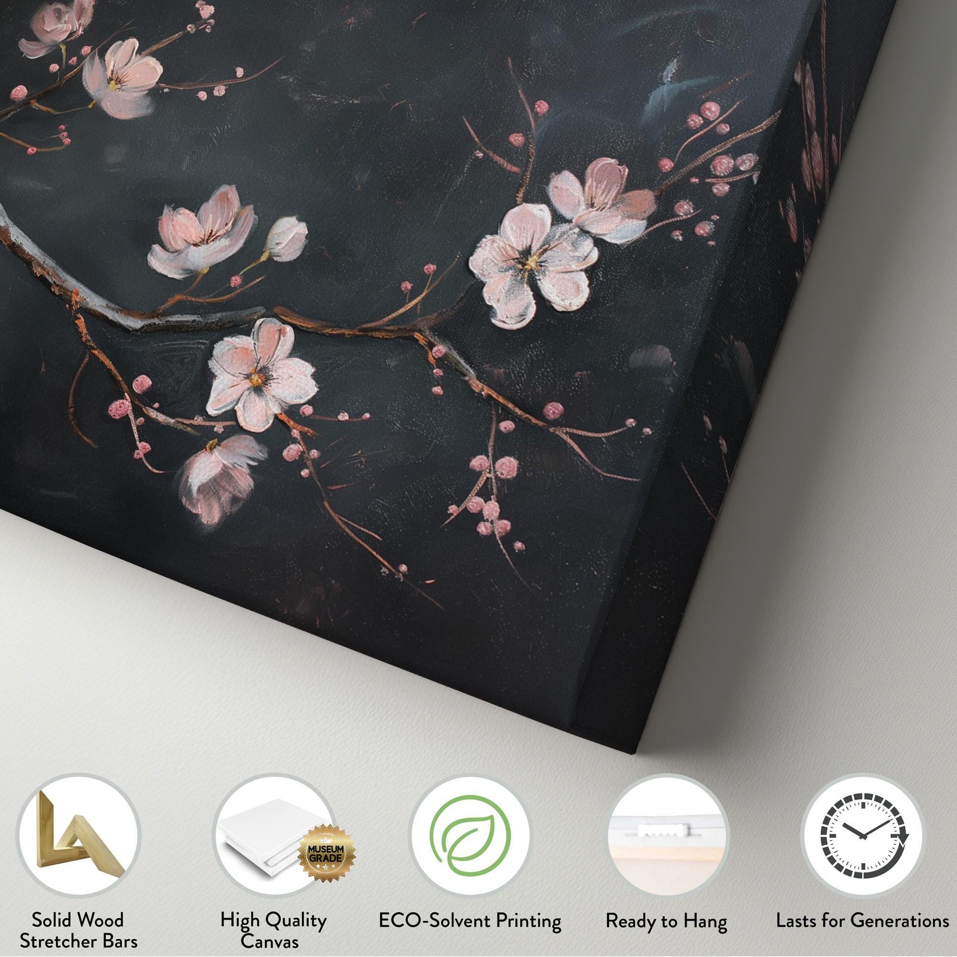 Cherry Blossom Branch Distressed Canvas Wall Art For Living Room, Landscape Japanese Canvas Print, Vintage Oil Large Canvas Art