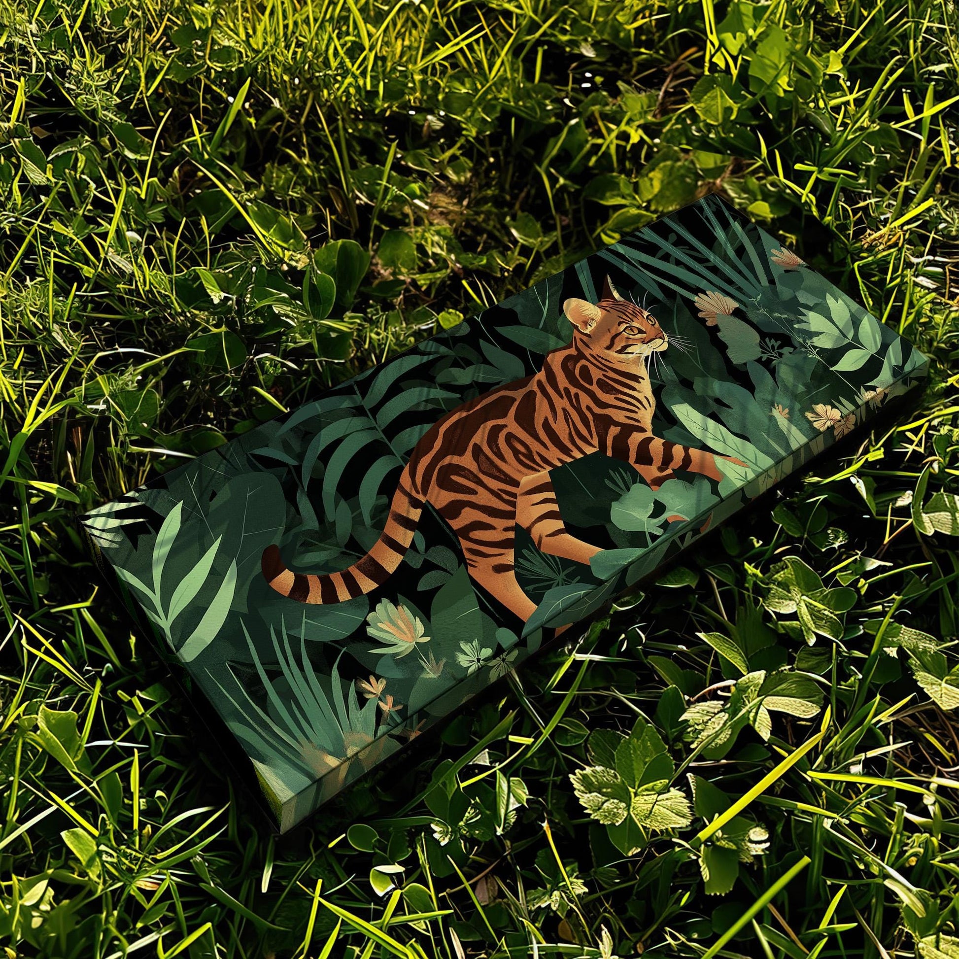 Cute Bengal Cat In The Woods Panoramic Wall Art Pet, Panorama Adorable Canvas Print, Minimal Decor Canvas Art