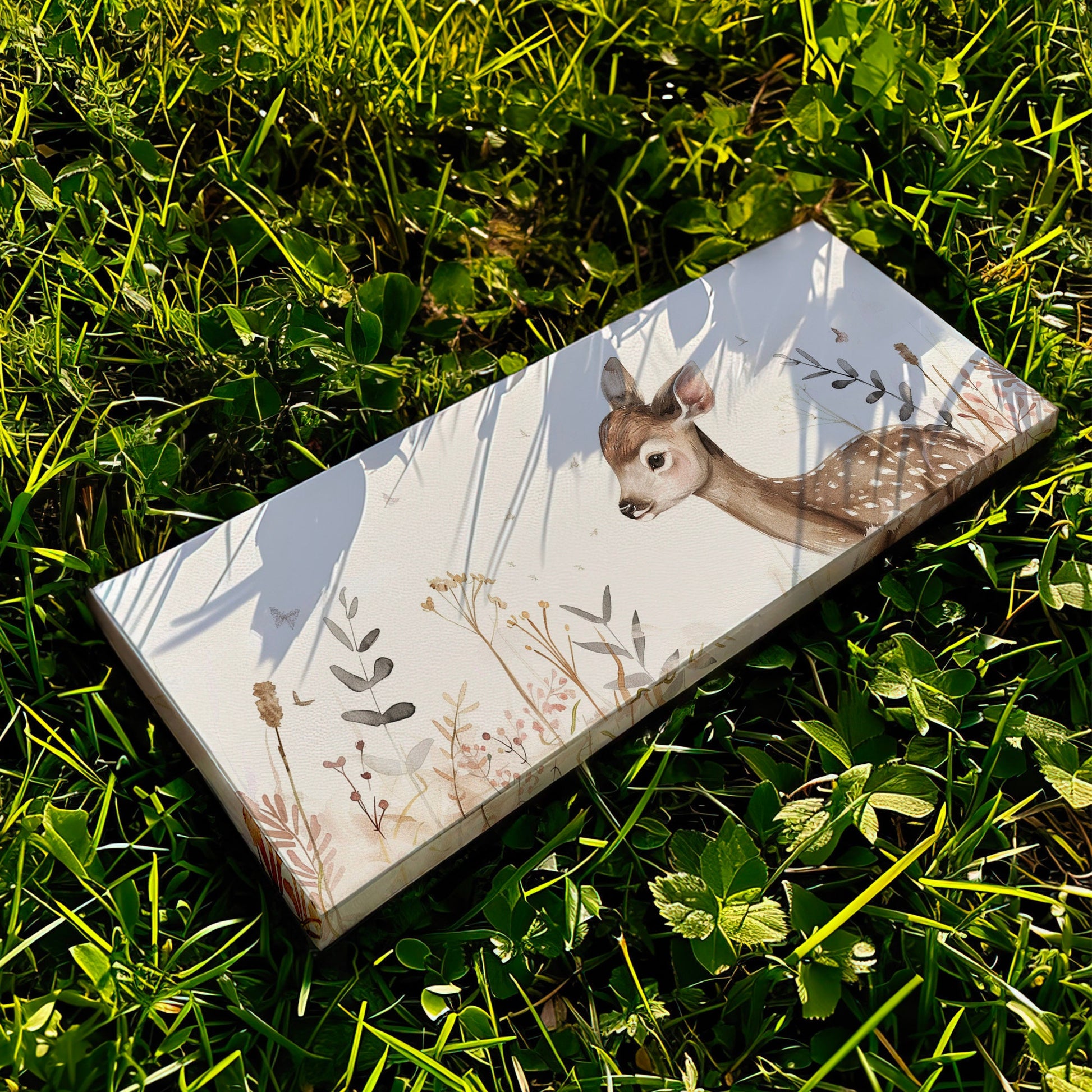 Deer Nursery Above Bed Wall Art Neutral, Panoramic Wildlife Canvas Print, Minimal Long Horizontal Canvas Art