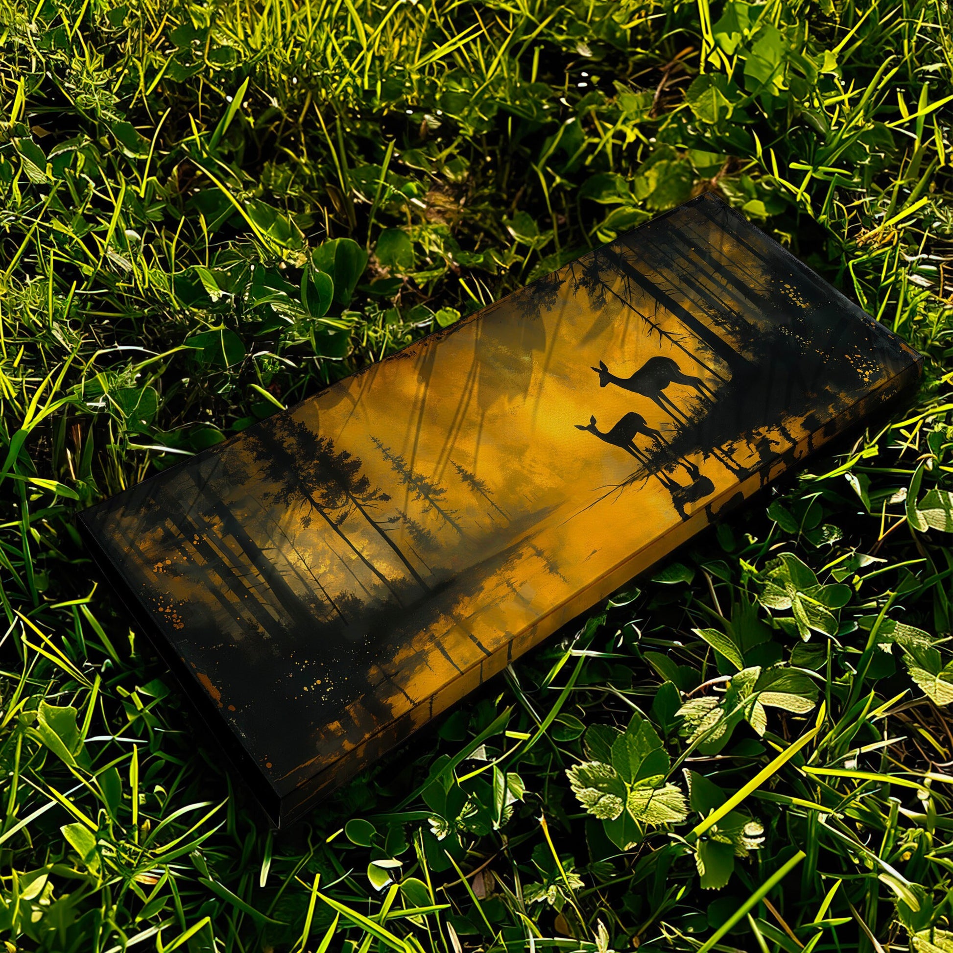Deers In The Forest Above Bed Wall Art Lake, Panoramic Wildlife Canvas Print, Nature Long Horizontal Canvas Art
