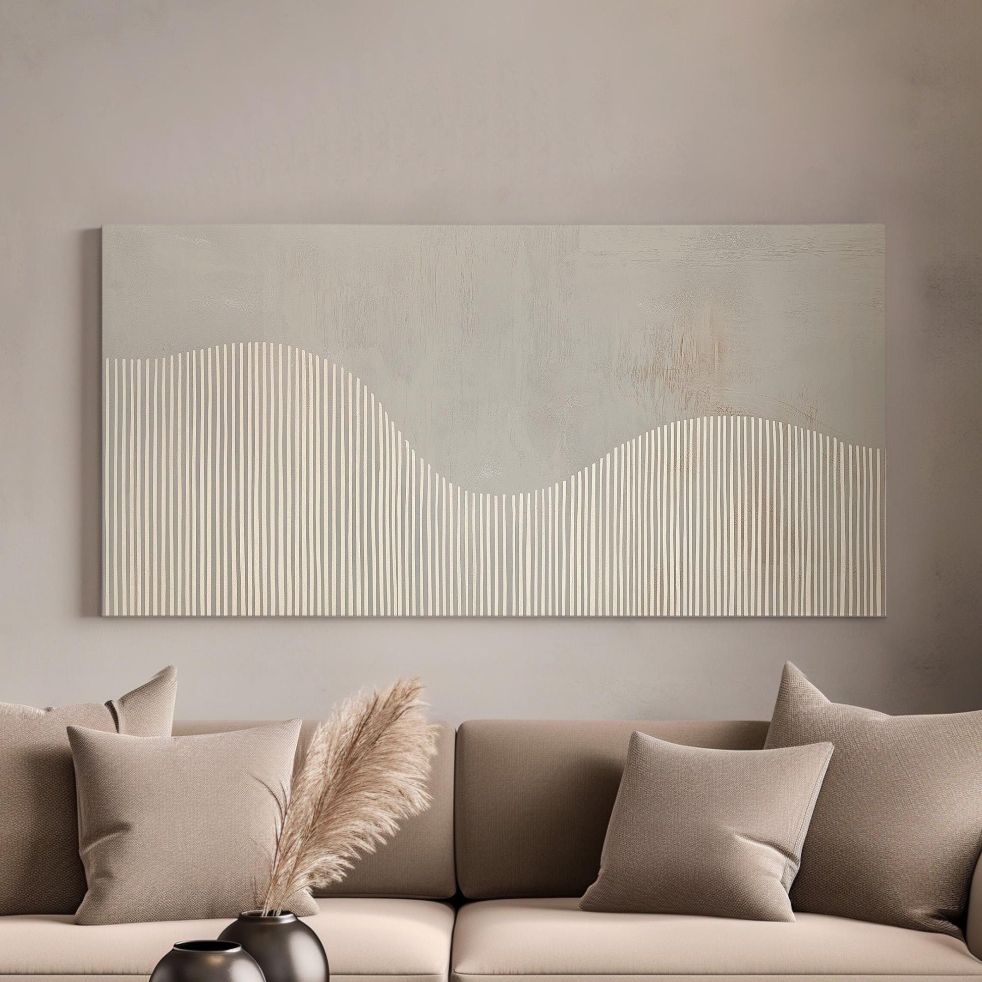 Desert Echo Wall Art For Living Room, Horizontal Scandinavian Waves Canvas Print, Abstract Sand Dunes Decor Canvas Art