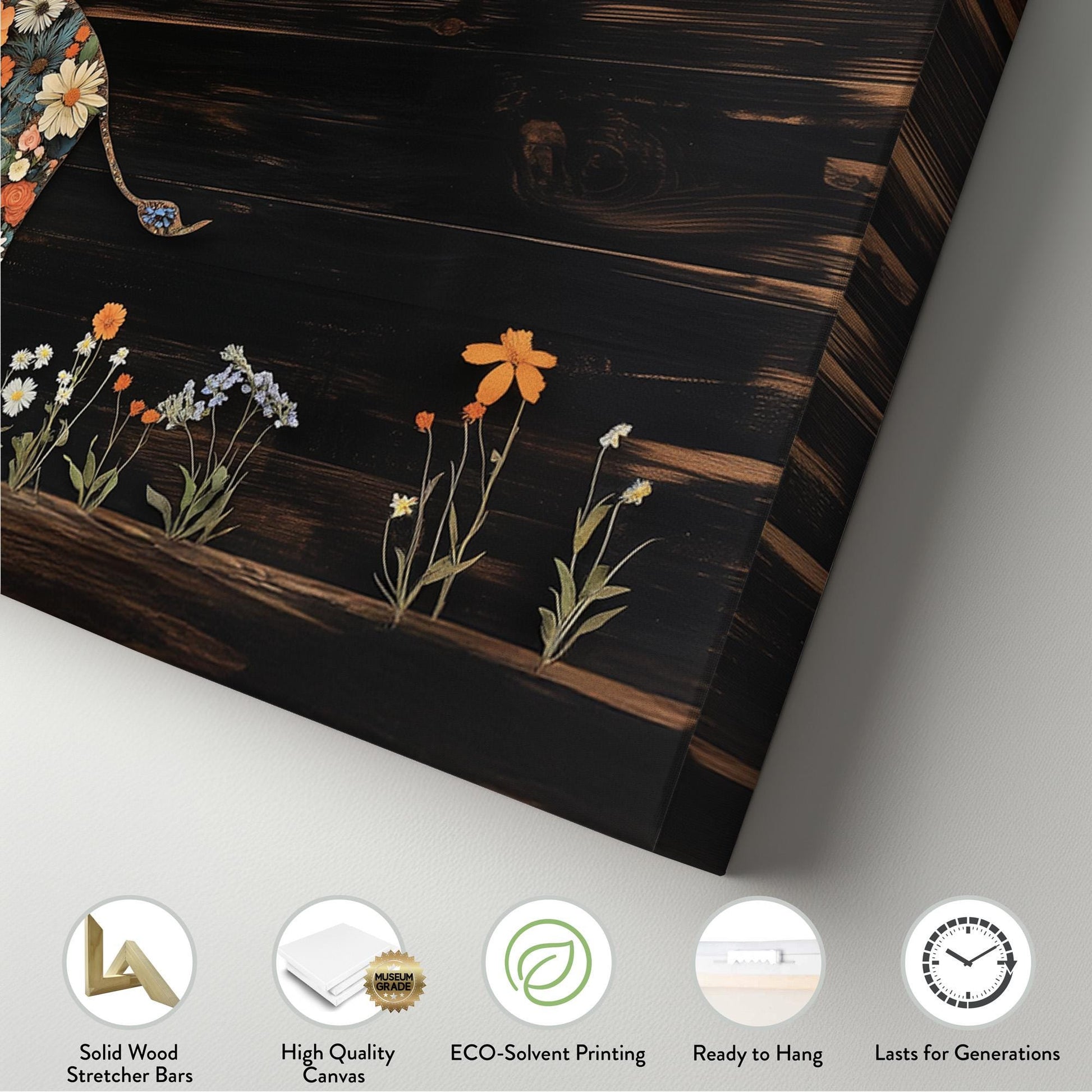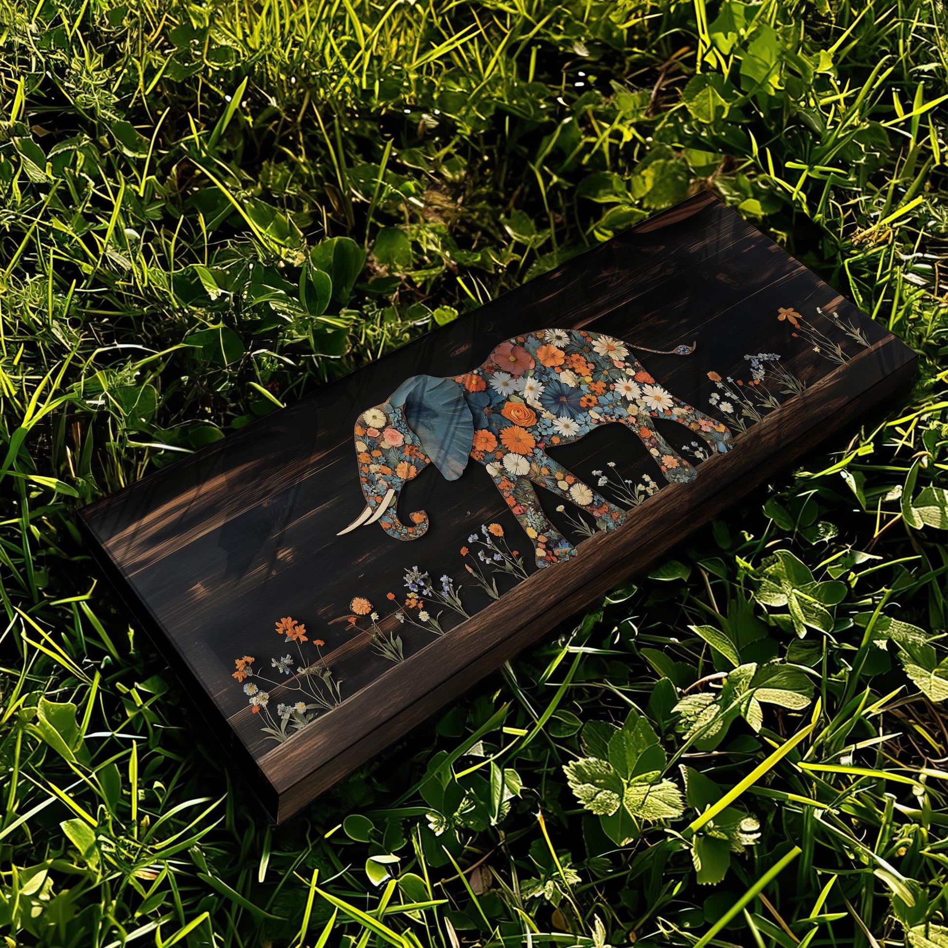 Floral Wood Elephant Panoramic African Elephant, Minimal Animal Lover Canvas Print, Boho Japandi Printed Canvas Art