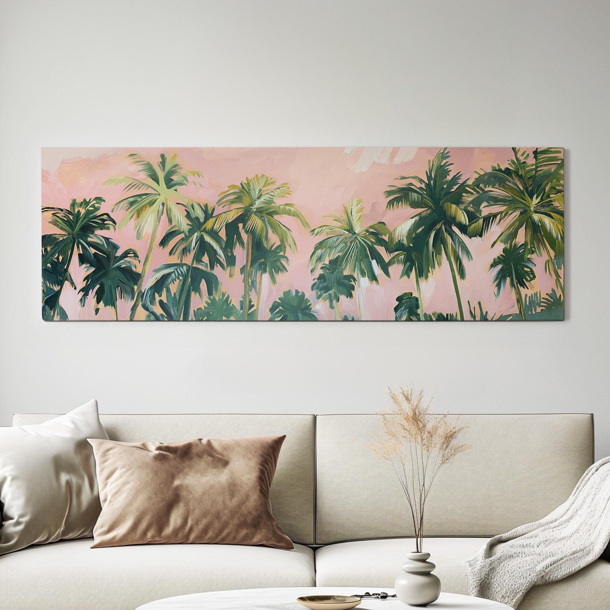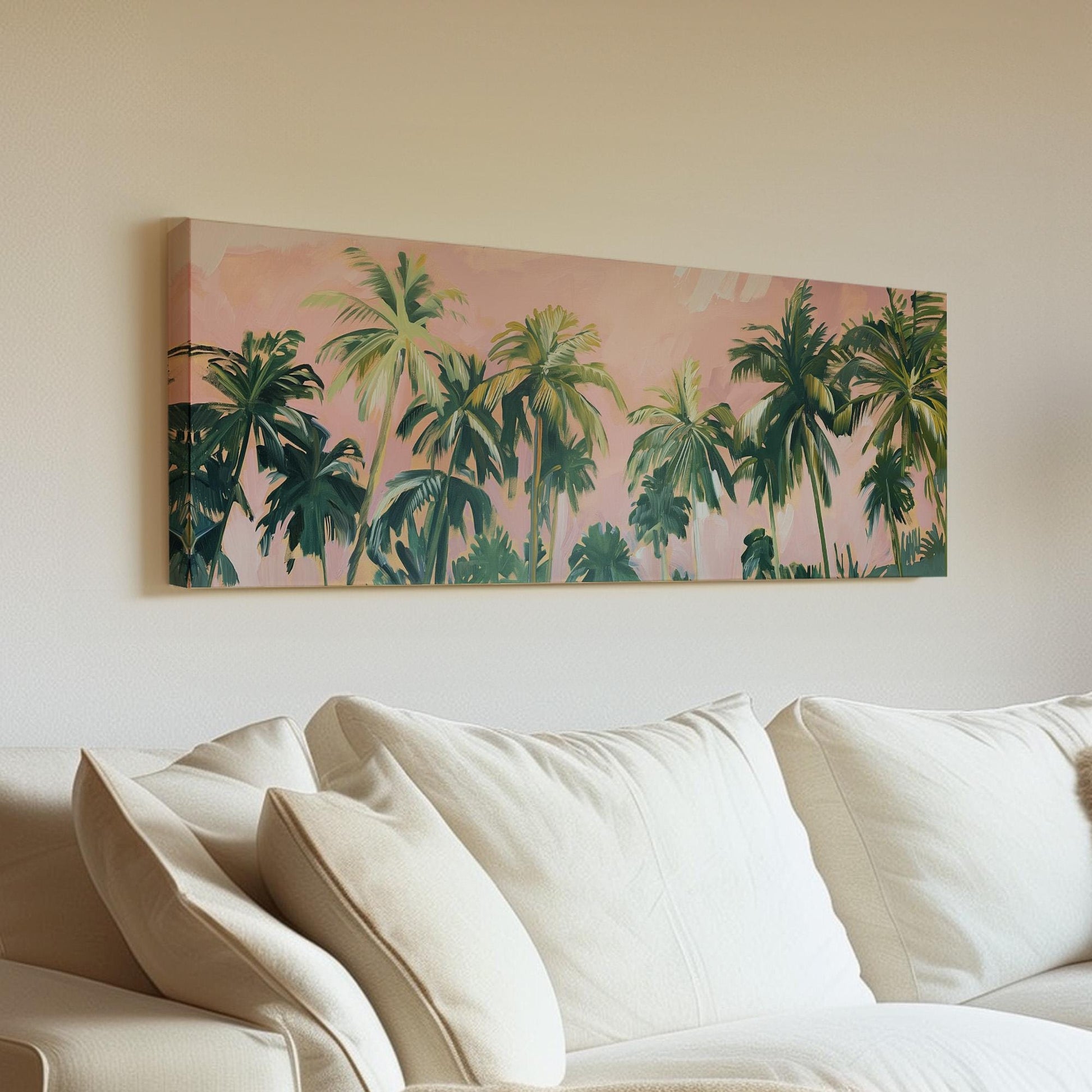 Florida Palm Tree Oil Panoramic Wall Art Coastal, Panorama Tropical Canvas Print, Summer Decor Canvas Art