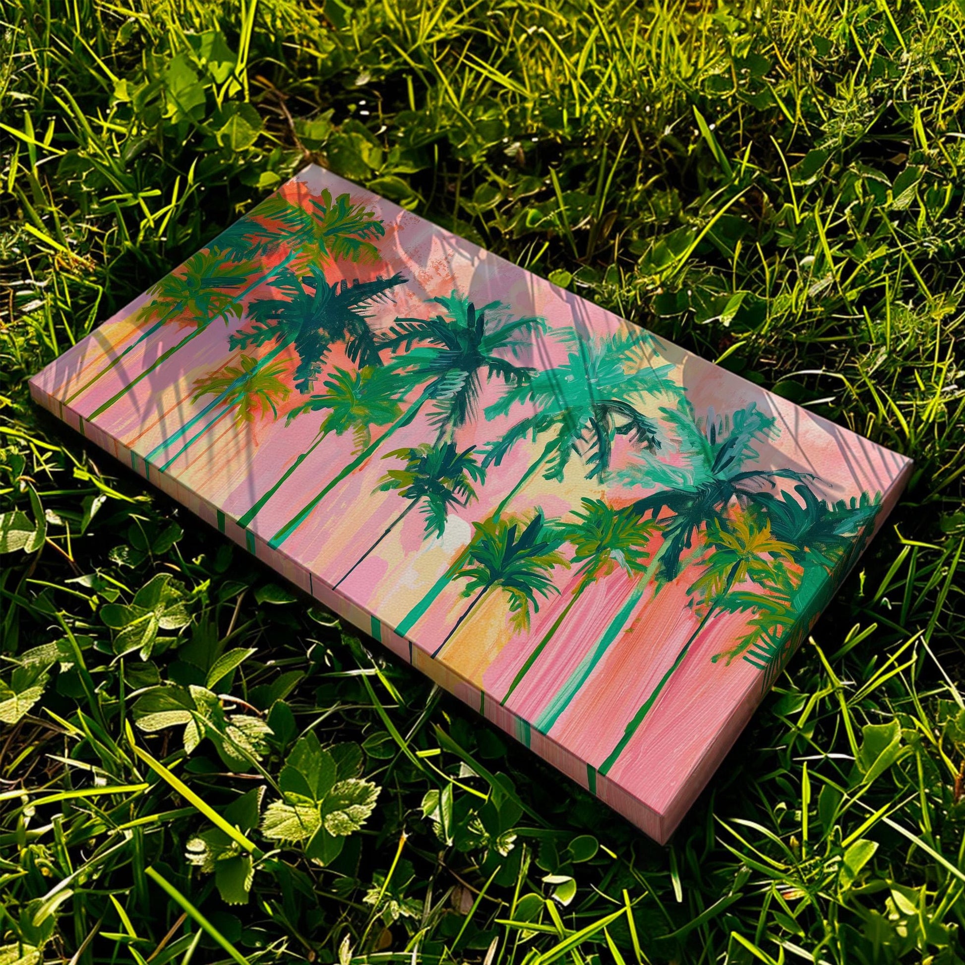 Florida Palm Tree Pink Canvas Wall Art For Living Room, Landscape Tropical Canvas Print, Summer Large Canvas Art