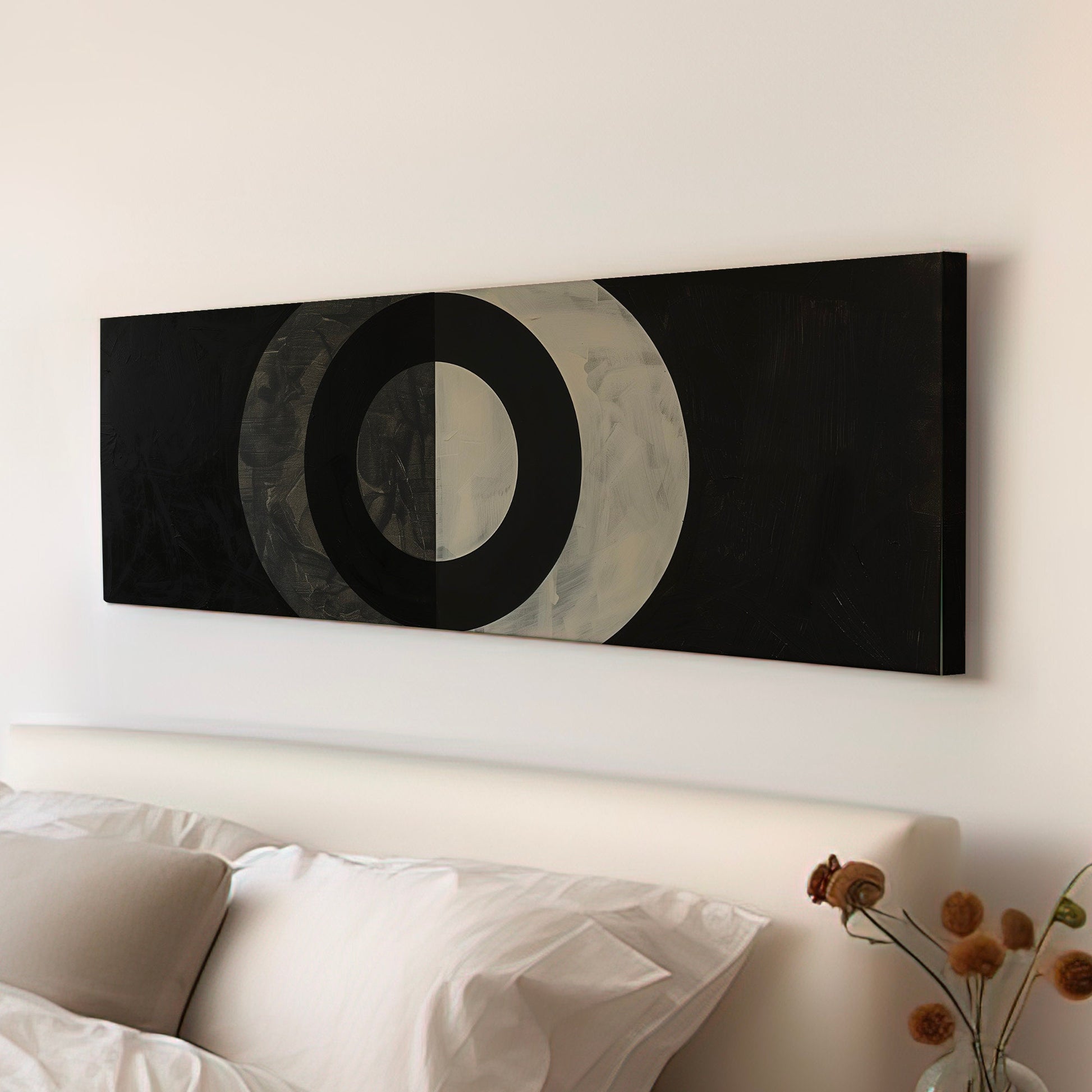 Geometric Planets Long Horizontal Wall Art For bedroom, Panoramic Mid Century Modern Canvas Print, Lunar Decor Canvas Art