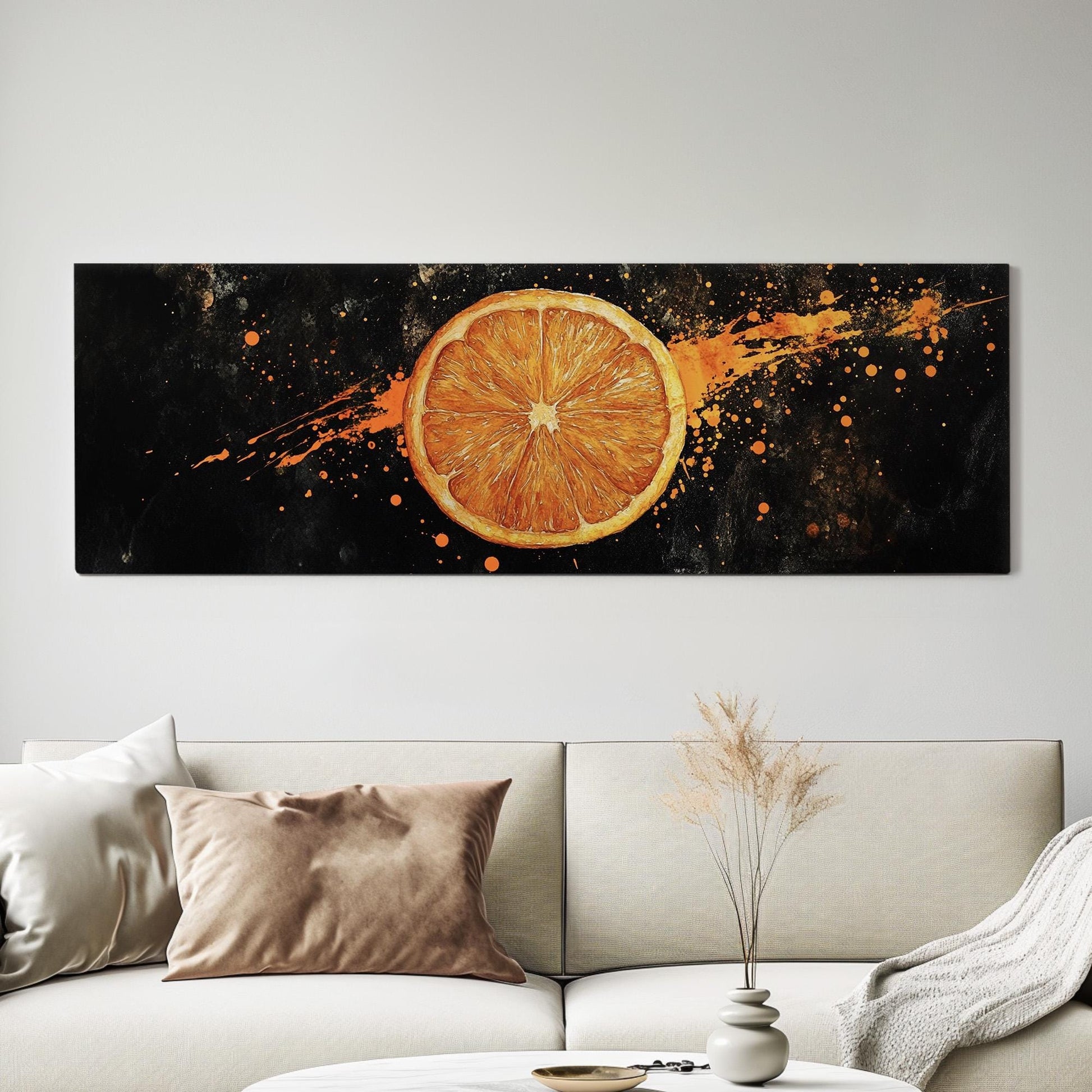 Juicy Orange Slice Panoramic Fresh Citrus, Minimal Kitchen Wall Canvas Print, Farmhouse Printed Canvas Art