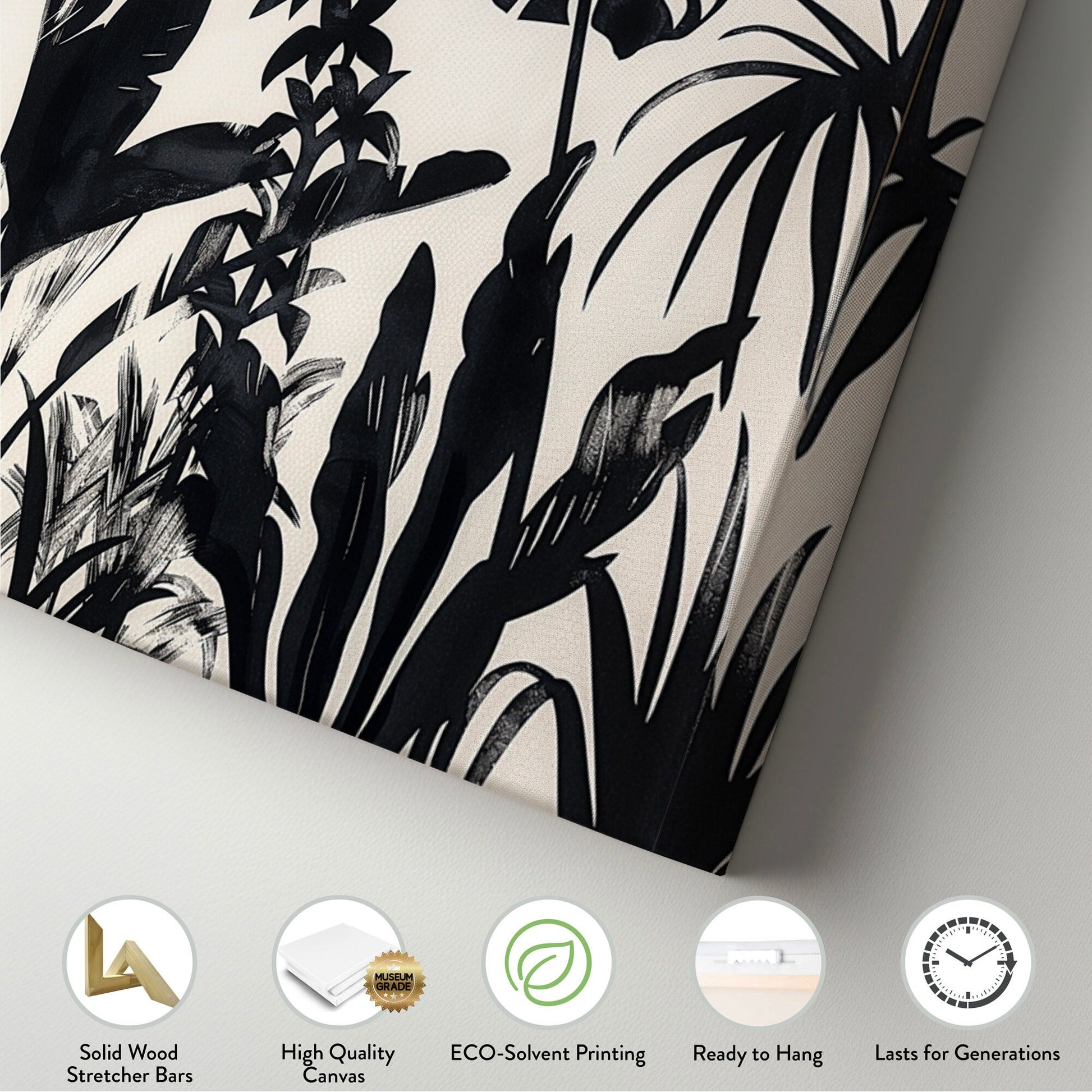 Jungle Plants Long Horizontal Wall Art For Bedroom, Panoramic Black and White Canvas Print, Botanical Decor Canvas Art