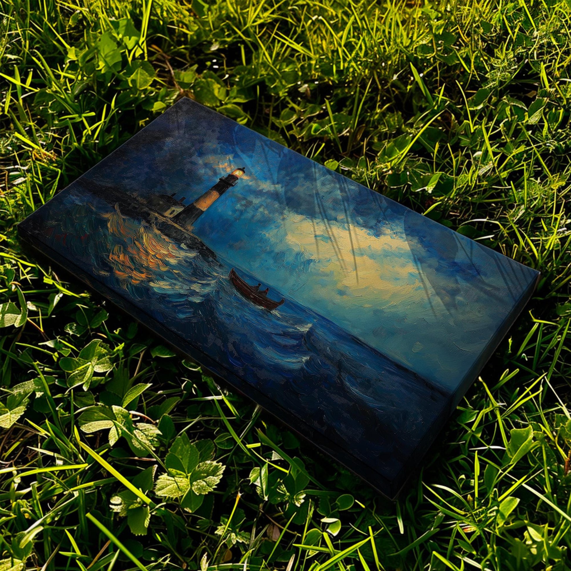 Lighthouse With A Boat Canvas Wall Art For Living Room, Landscape Boathouse Canvas Print, Sea Coast Large Canvas Art