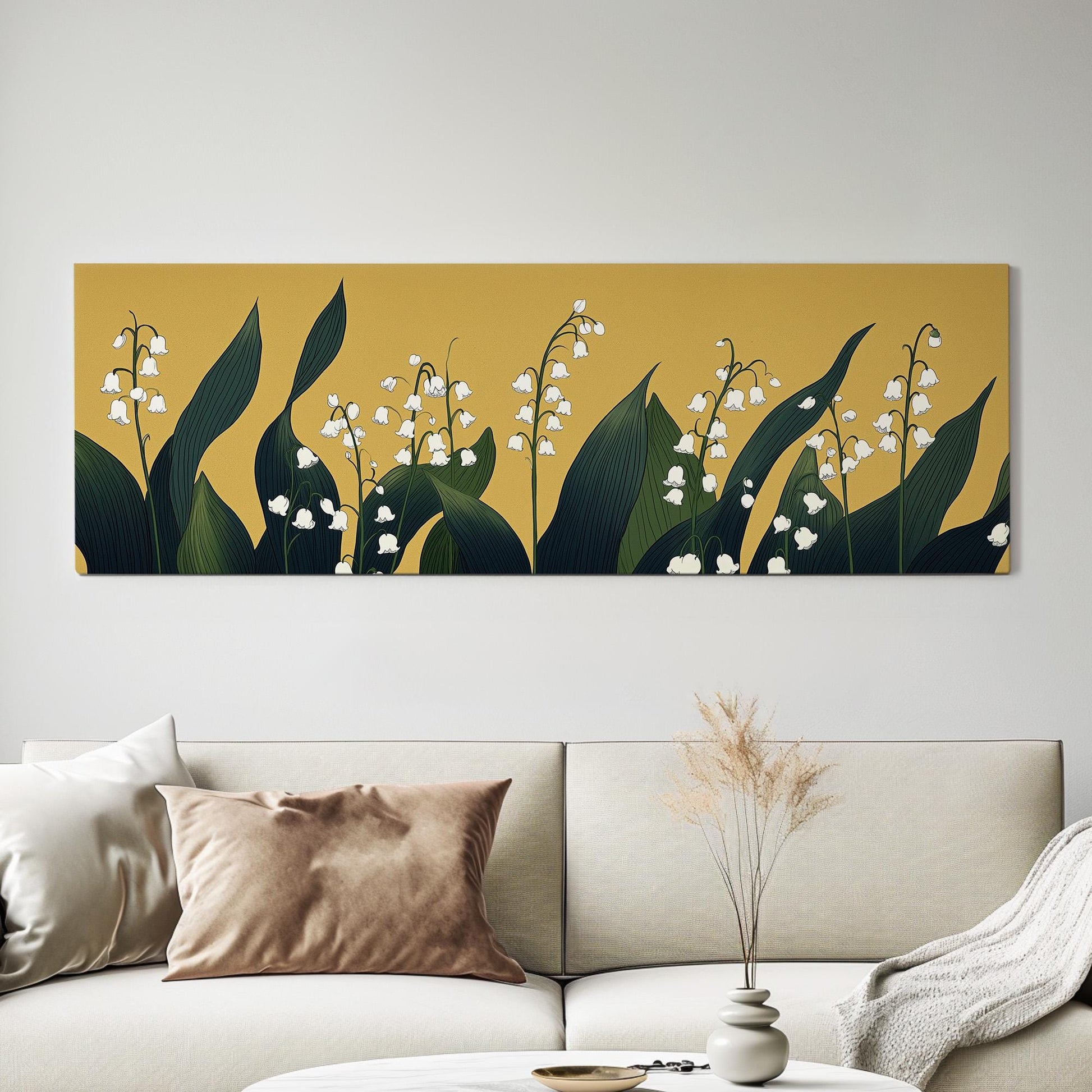 Lily of the Valley Field Panoramic Wall Art Floral, Panorama Lillies Canvas Print, Still Life Decor Canvas Art