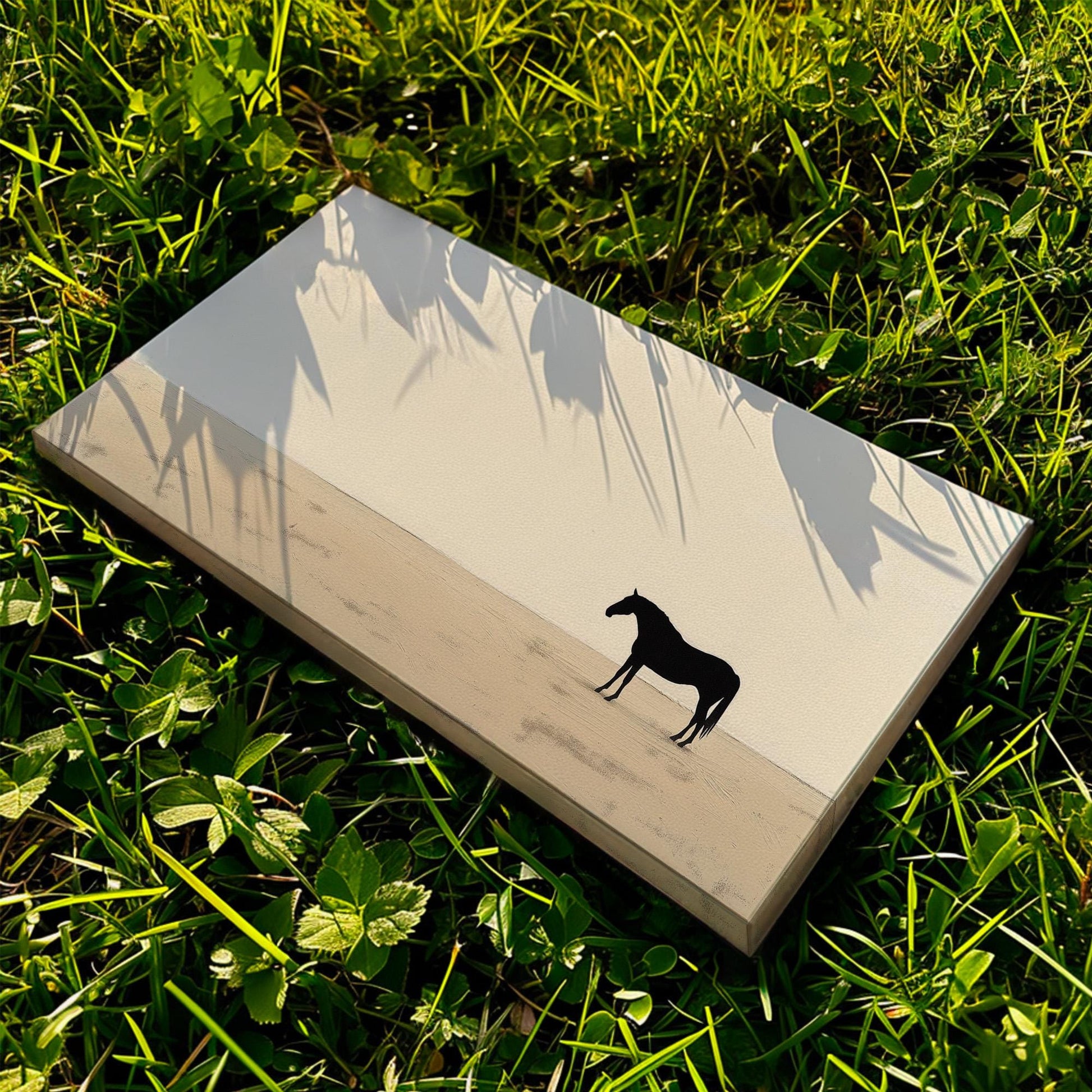 Lone Horse On Praire Canvas Wall Art For Living Room, Landscape Beige Canvas Print, Horse Farm Large Canvas Art