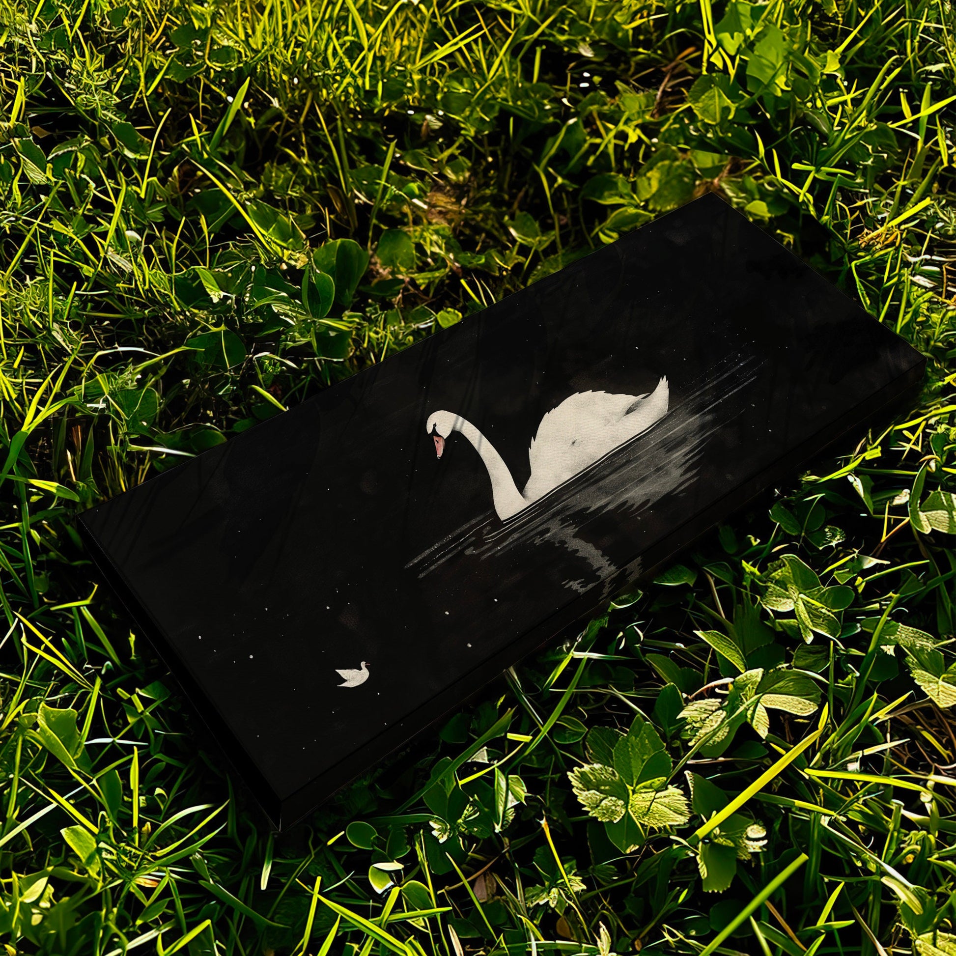 Lone Swan Above Bed Wall Art Black and White, Panoramic Farmhouse Canvas Print, Antique Long Horizontal Canvas Art