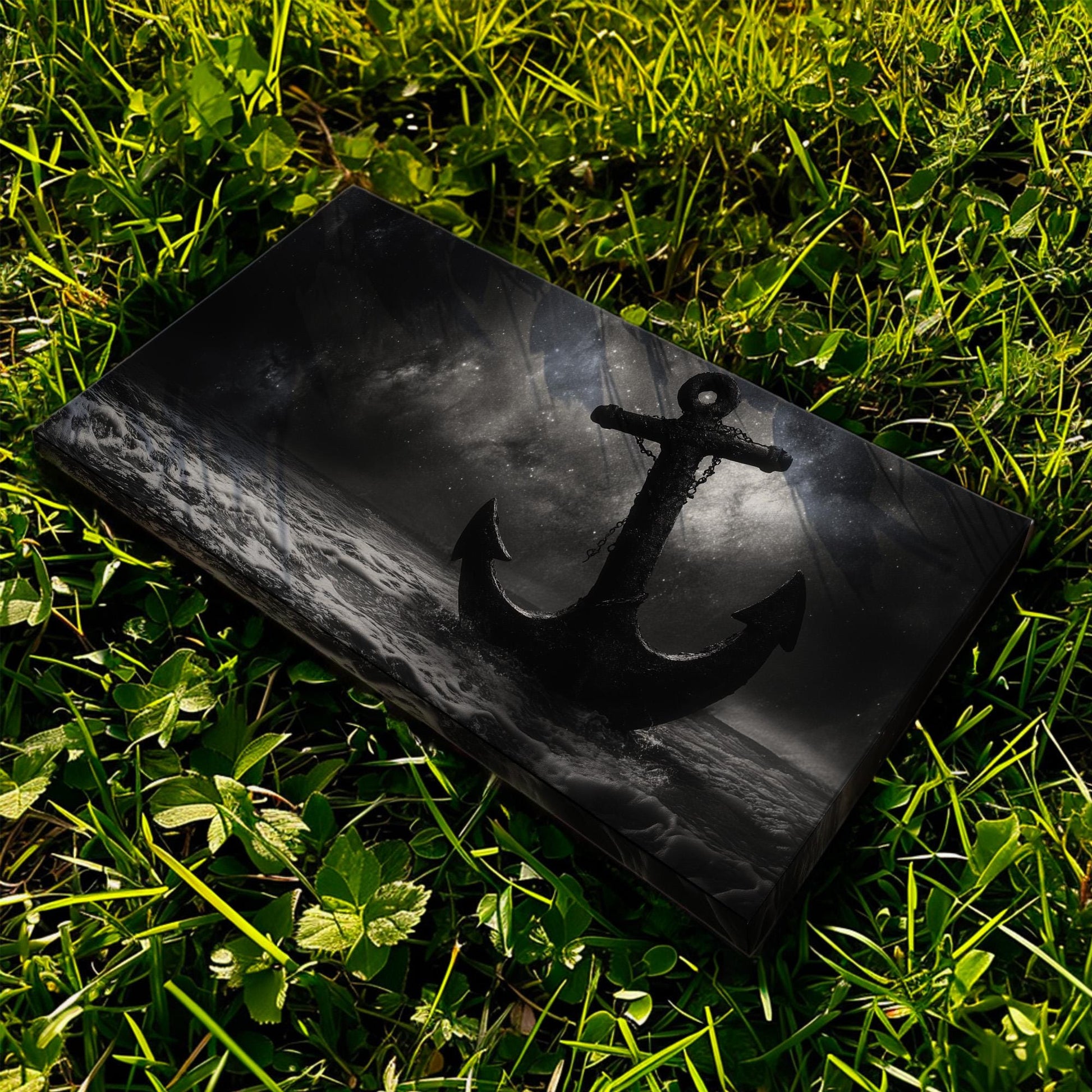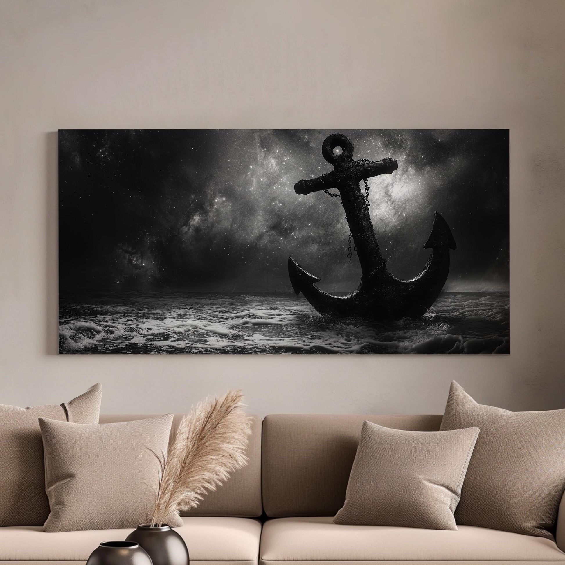 Lost Anchor At Night Lanscape Coastal Nautical, 2x1 Rustic Sea Canvas Print, Starry Sky 20x60 Canvas Art