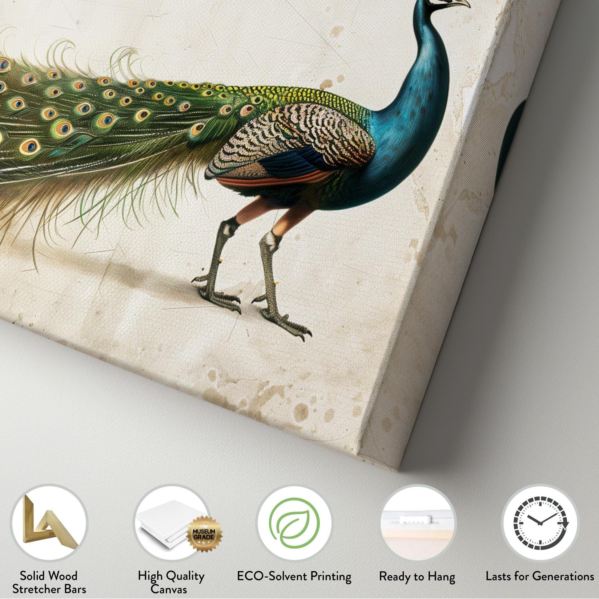 Magnificent Peacock Canvas Wall Art For Living Room, Landscape Antique Canvas Print, Vintage Large Canvas Art