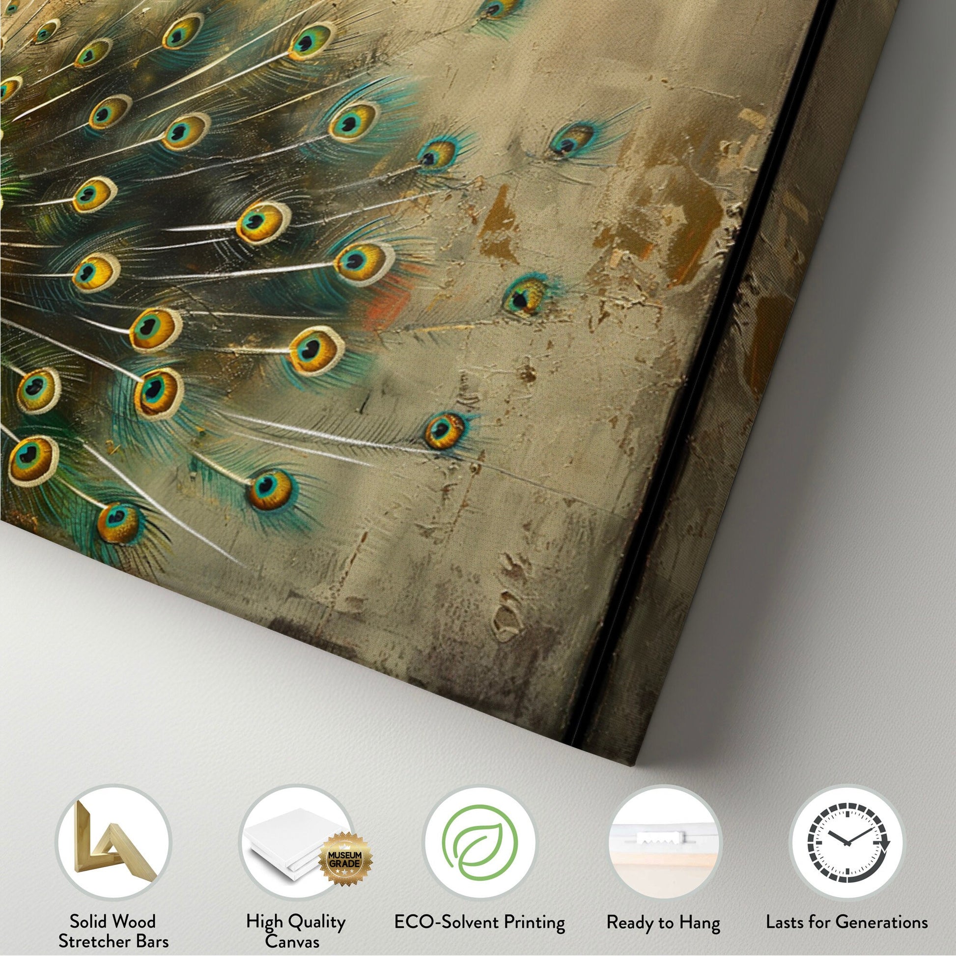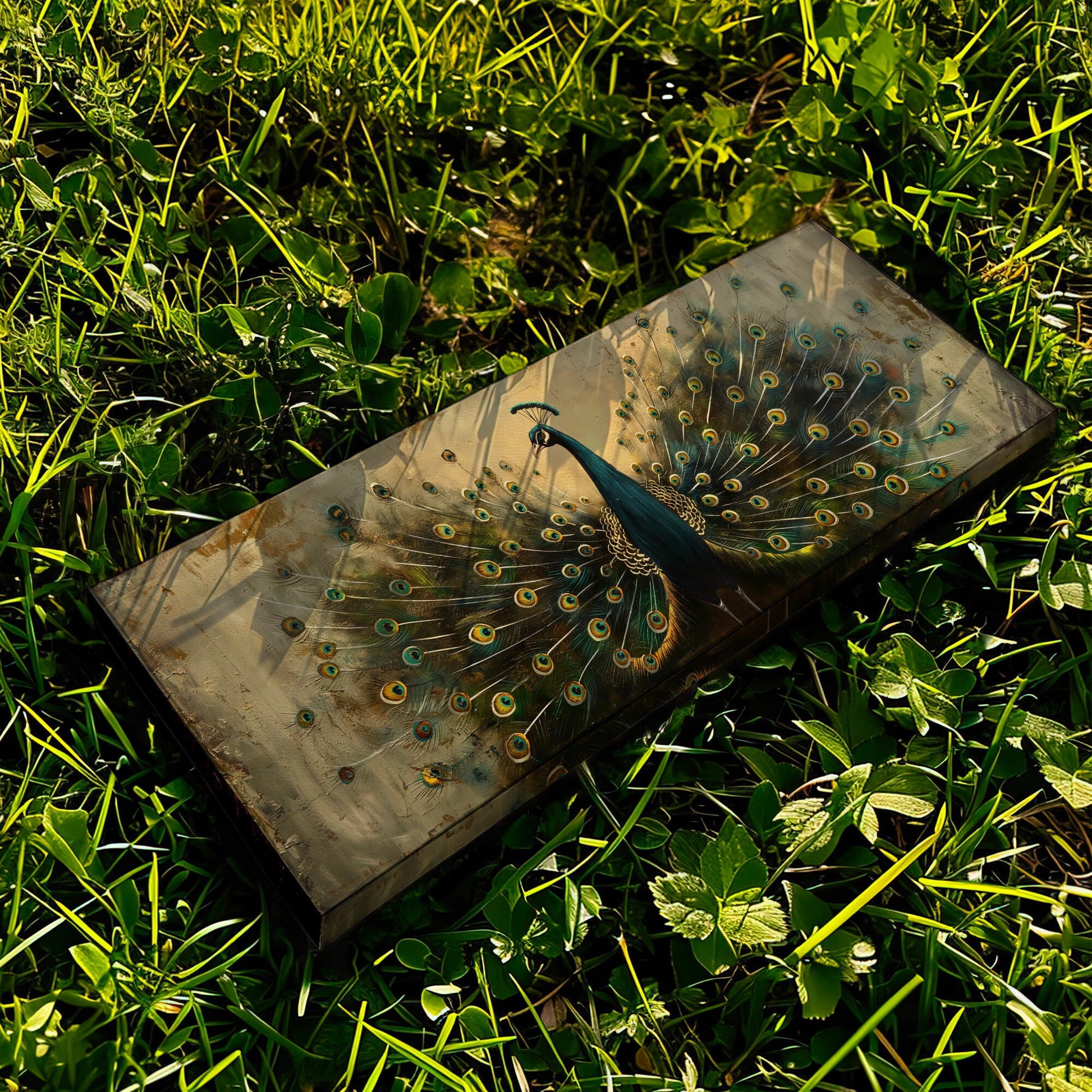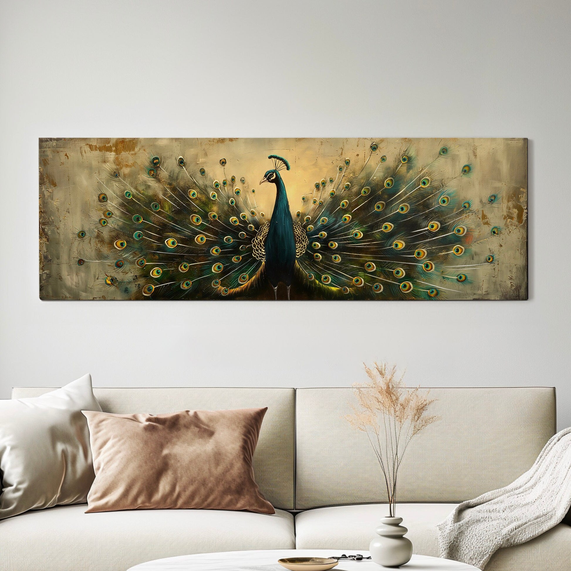 Majestic Peacock Long Horizontal Wall Art Above Bed, Panoramic Peaceful Canvas Print, Beautiful Feathers Decor Canvas Art