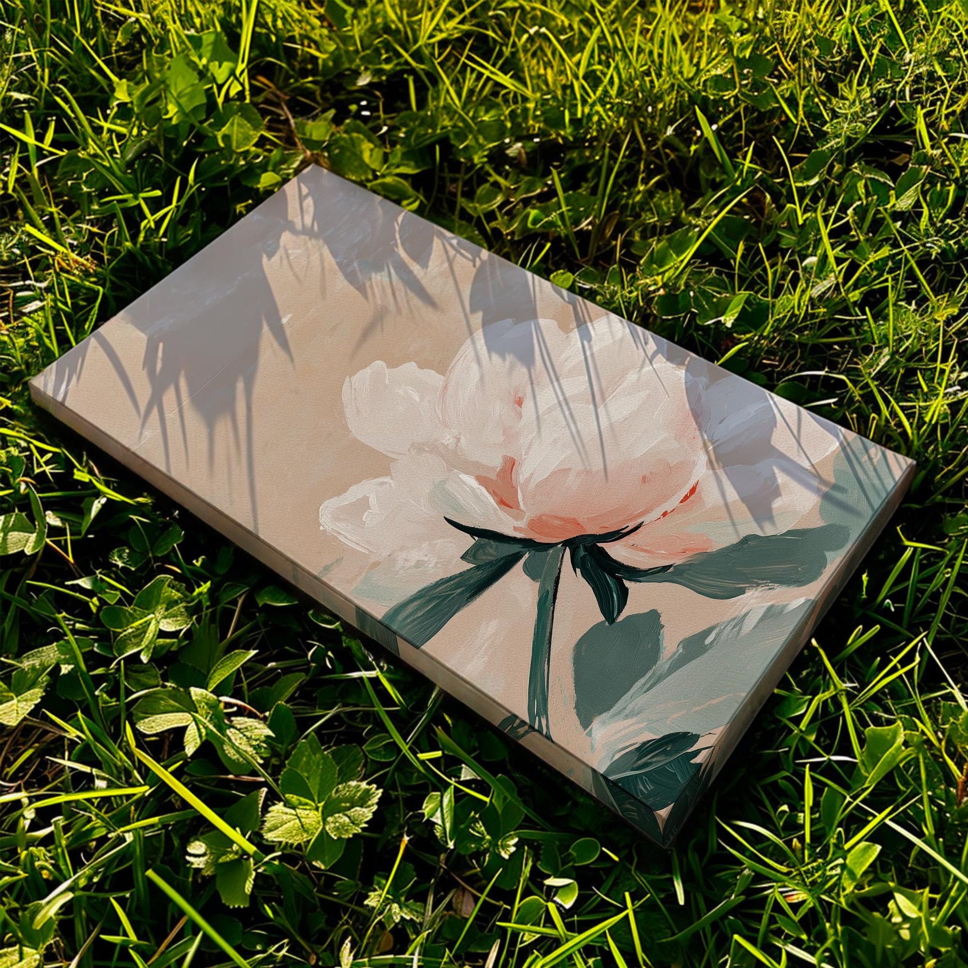 Minimal Pink Peony Lanscape Abstract Brush Peony, 2x1 Floral Charm Canvas Print, Rustic Farmhouse 20x60 Canvas Art