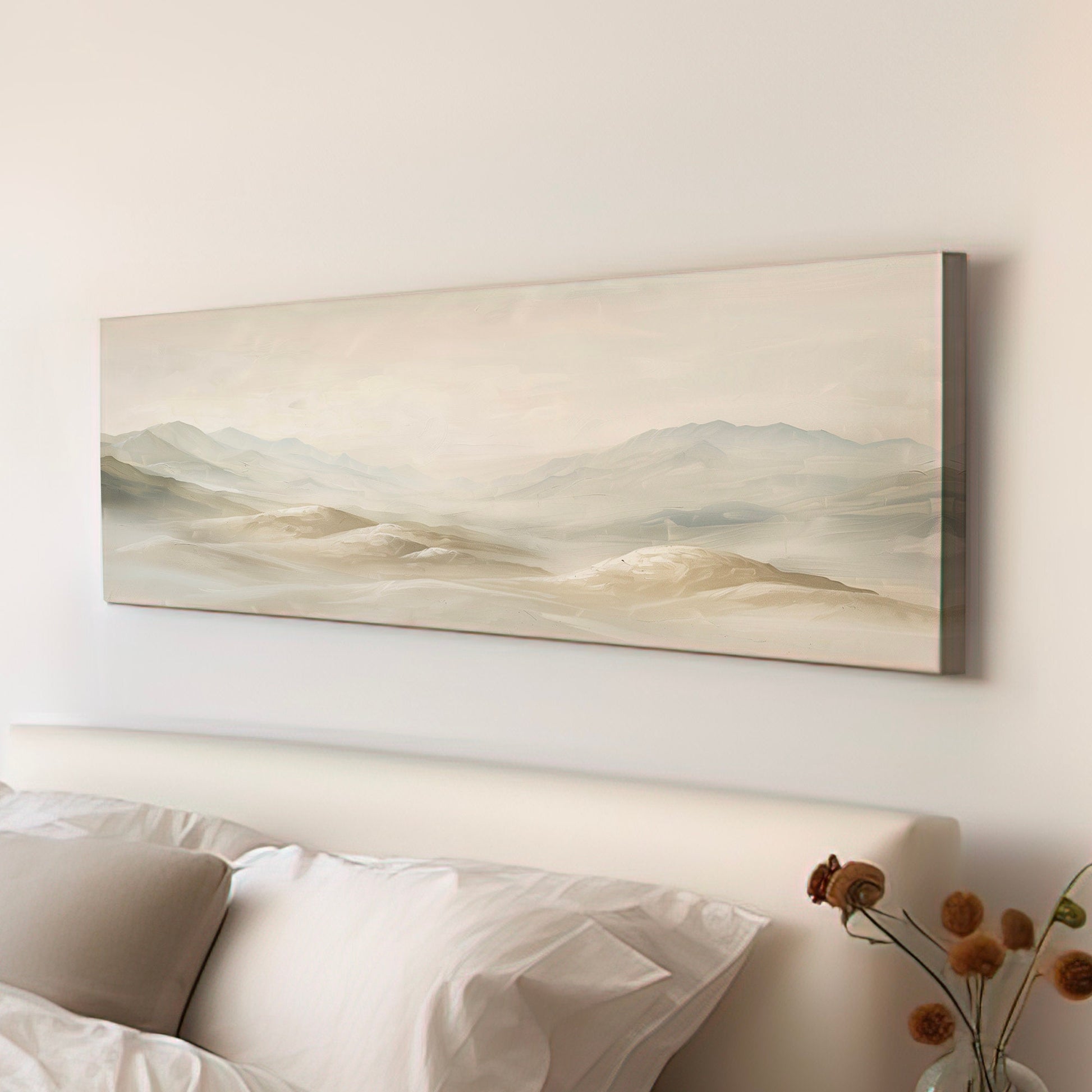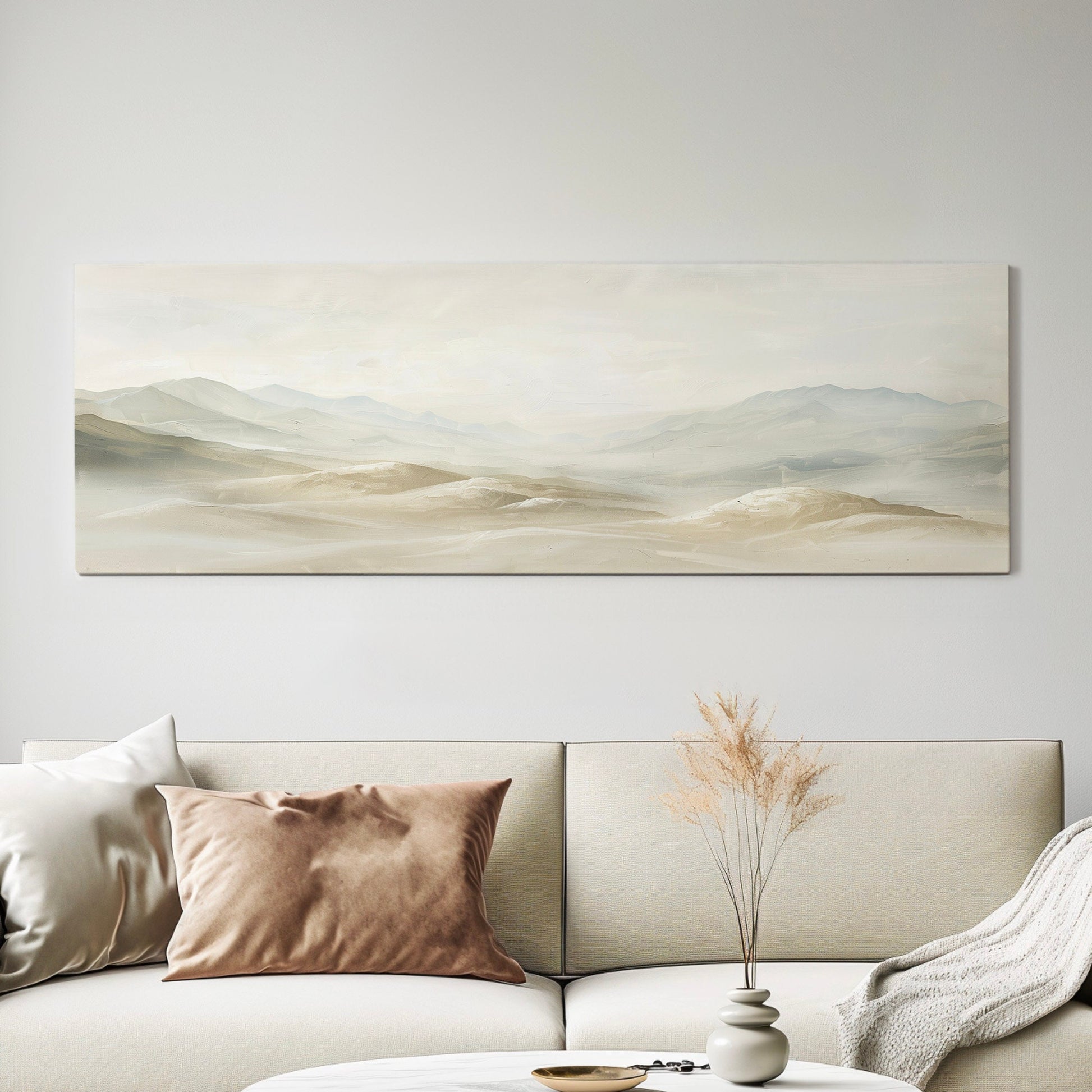 Minimalist Mountain Landscape Long Horizontal Wall Art For Living Room, Panoramic Earthy Canvas Print, Peaceful Decor Canvas Art