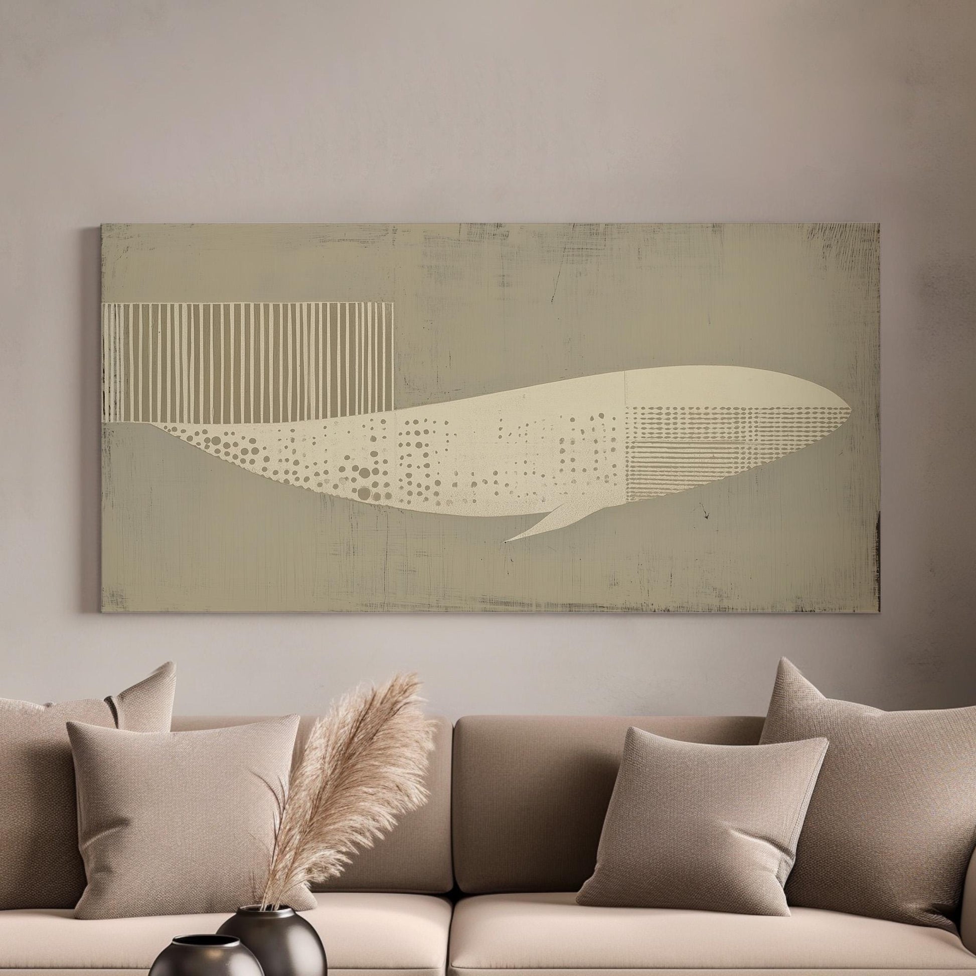 Minimalist Whale Drift Wall Art Above Bed, Horizontal Nautical Flow Canvas Print, Boho Coastal Decor Canvas Art