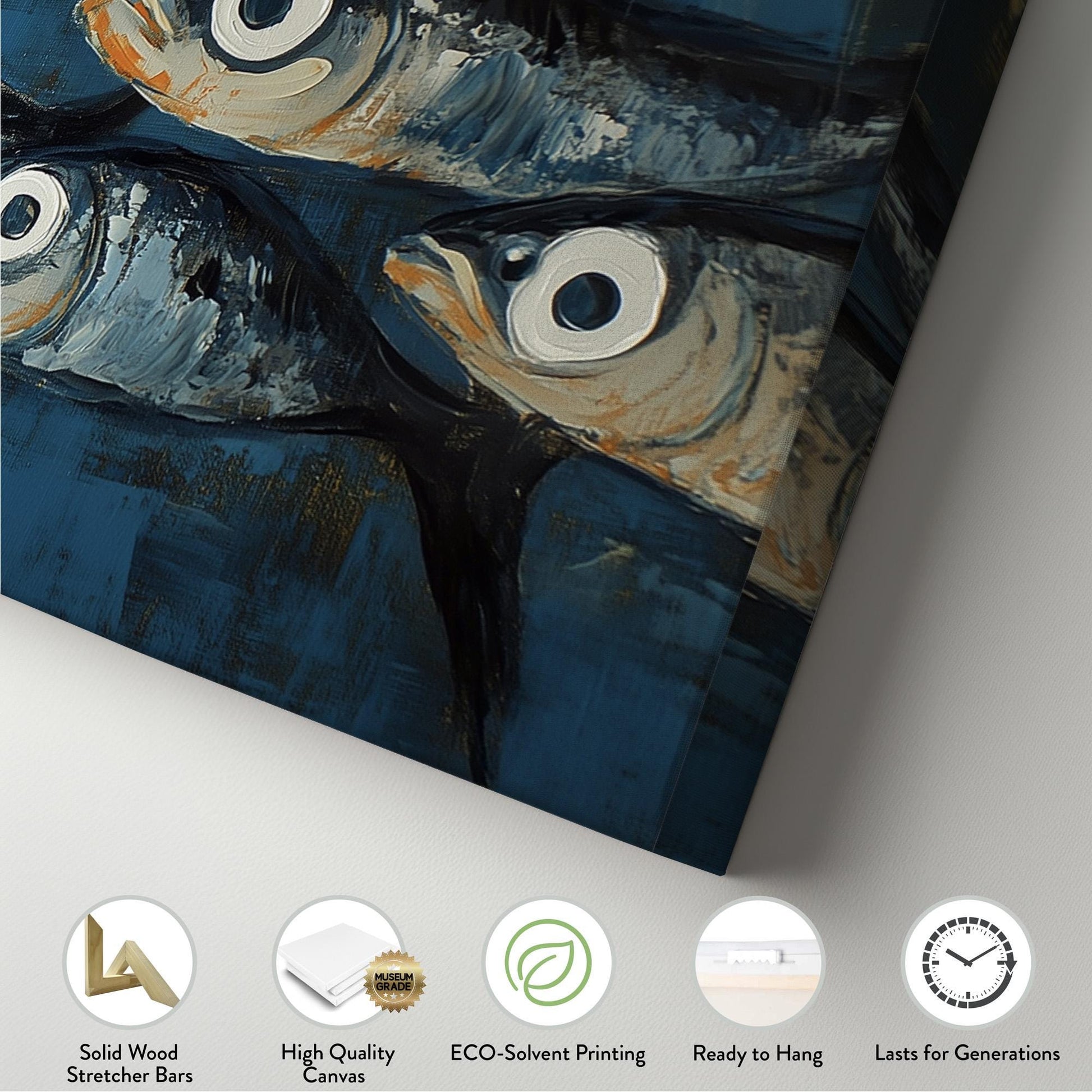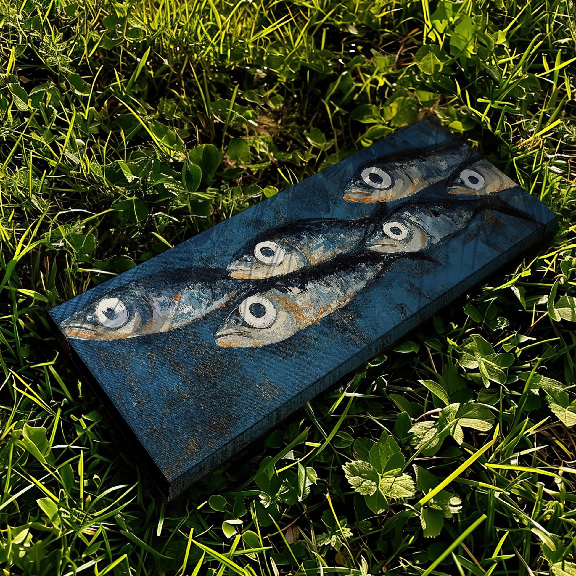Nautical Sardines Theme Panoramic Ocean Charm, Minimal Seaside Serenity Canvas Print, Rustic Vibes Printed Canvas Art