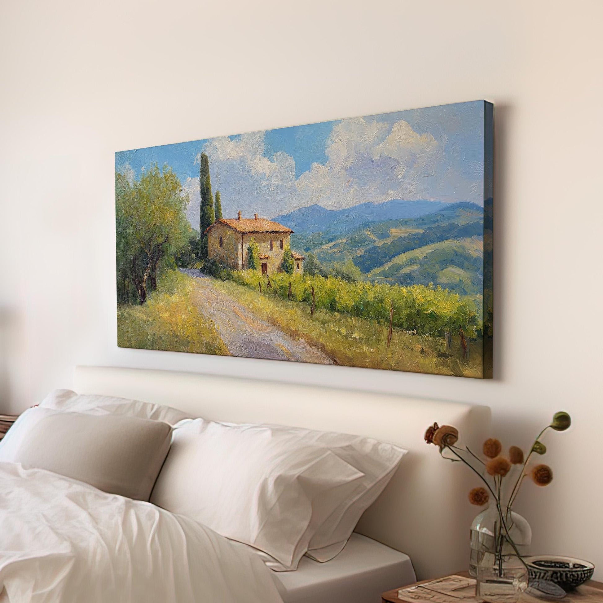 Old House By The Road Canvas Wall Art For Living Room, Landscape Tuscan Village Canvas Print, Italian Countryside Large Canvas Art