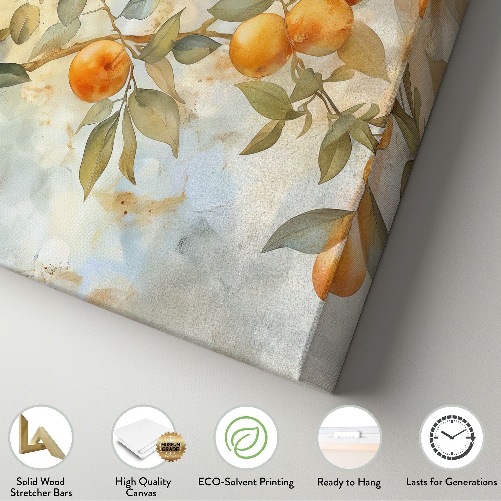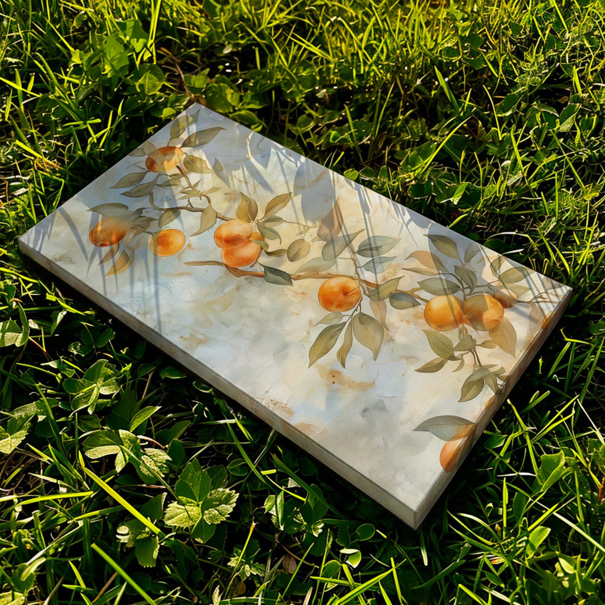orange Tree Branch Long Horizontal Wall Art For Guestroom, Panoramic Fruit Field Canvas Print, Farmhouse Decor Canvas Art