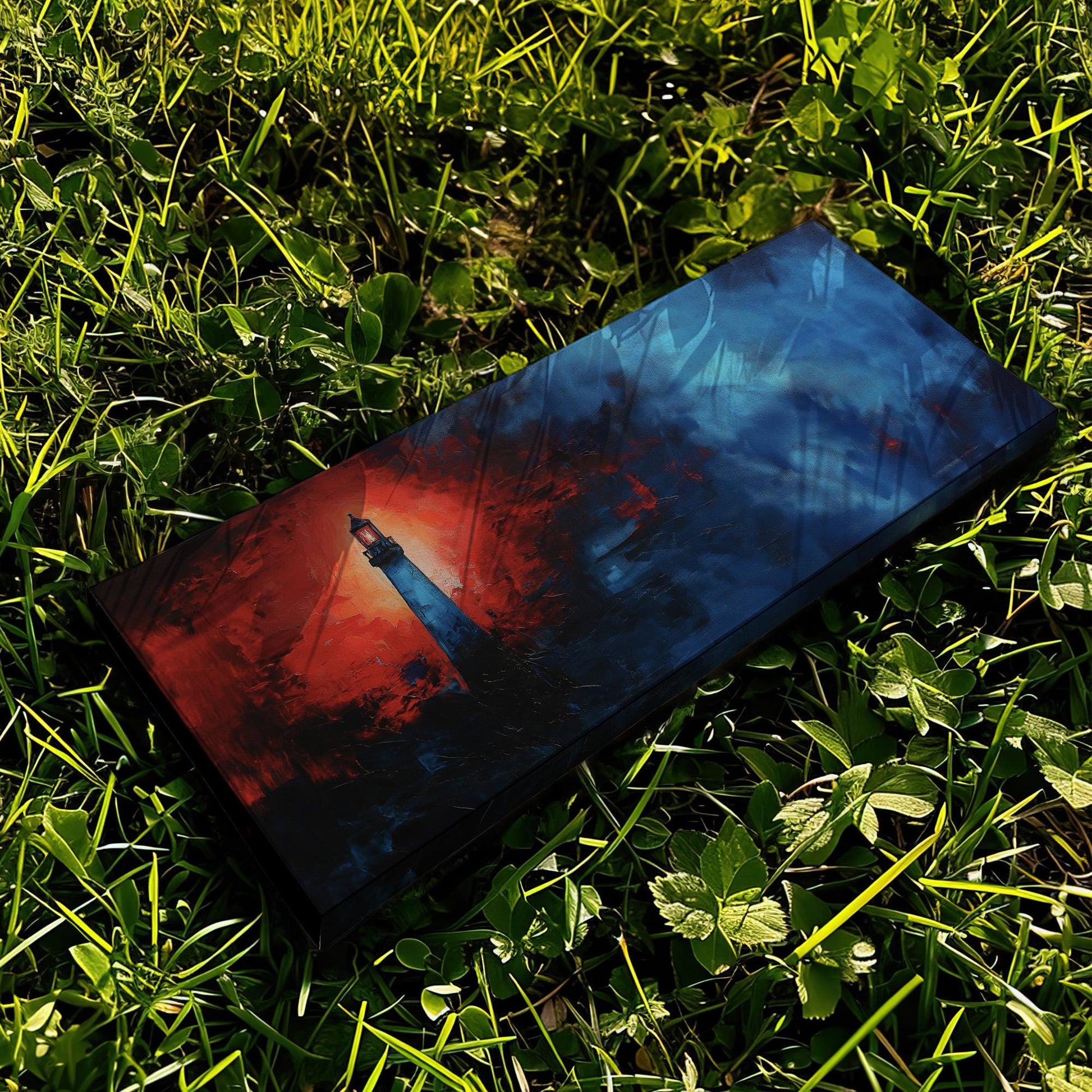 Red Lighthouse In The Huge Fog Panoramic Wall Art Lakehouse, Panorama Boathouse Canvas Print, Sea Coast Decor Canvas Art