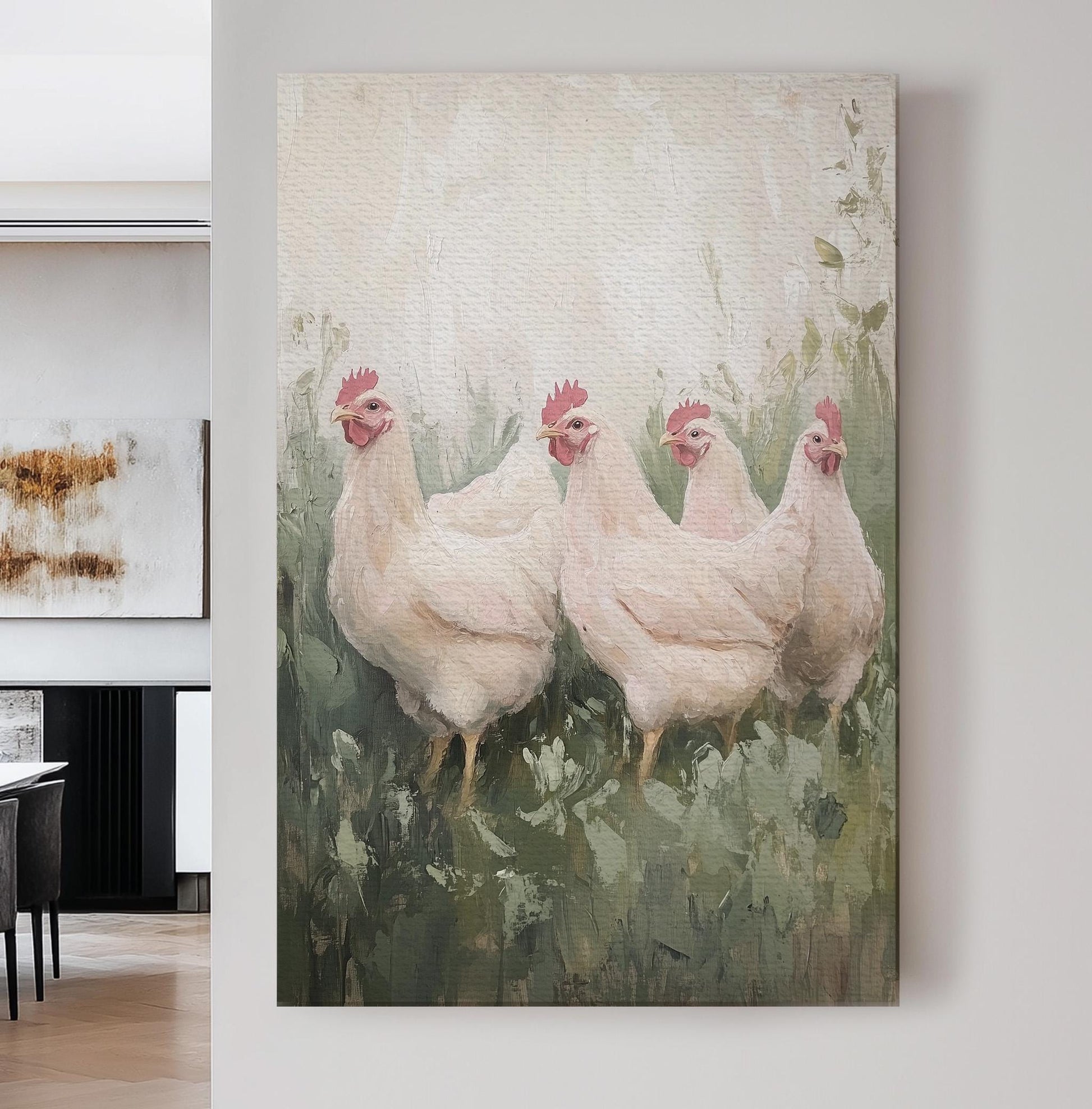 Rooster Farm Wall Art Rustic Farmhouse, Vertical Homestead Canvas Print, Chicken Coup Decor Canvas Art