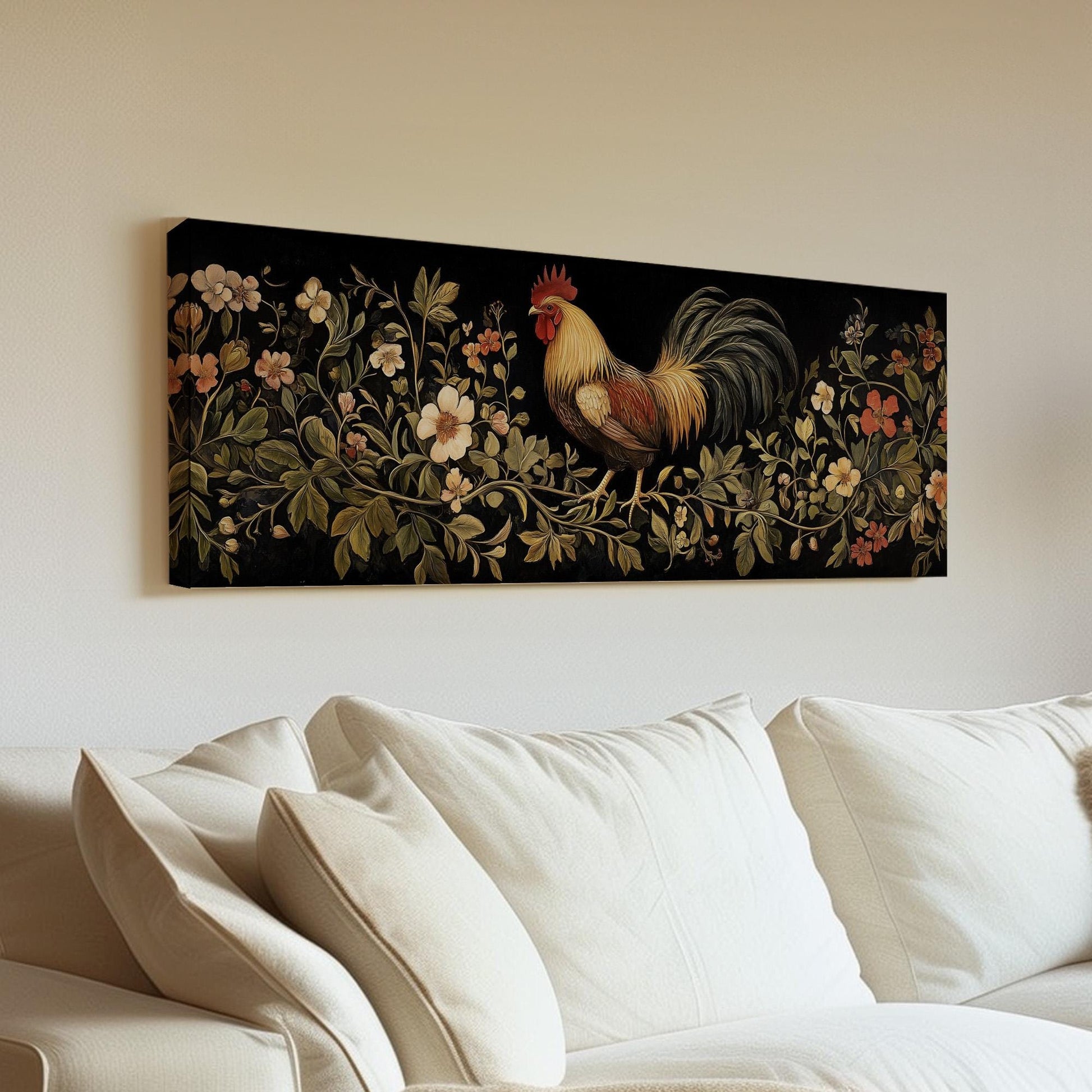 Rooster on a Branch Panoramic Art Rustic Farmhouse, Canvas Homestead Wall Art Print, Chicken Coup Decor Canvas Art