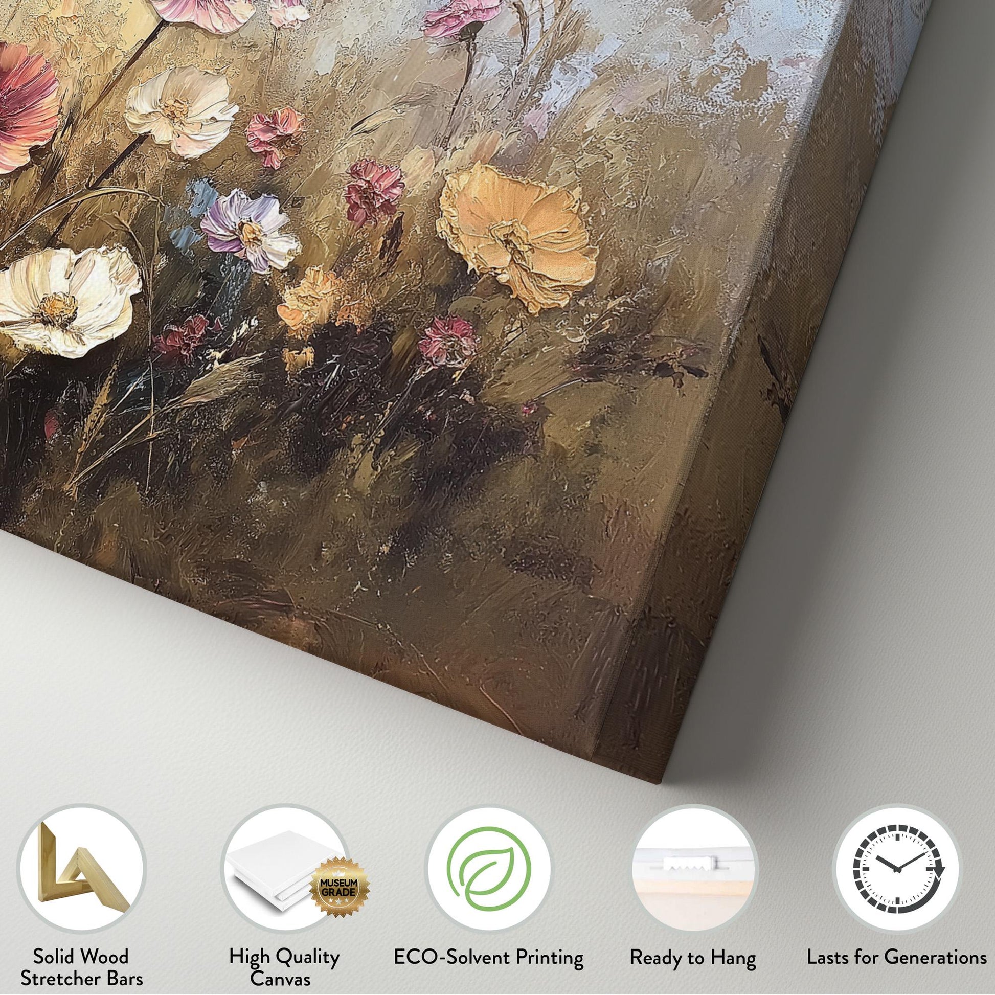 Rustic Wildflowers Canvas Wall Art For Living Room, Landscape Wildflower Meadow Canvas Print, Vintage Large Canvas Art