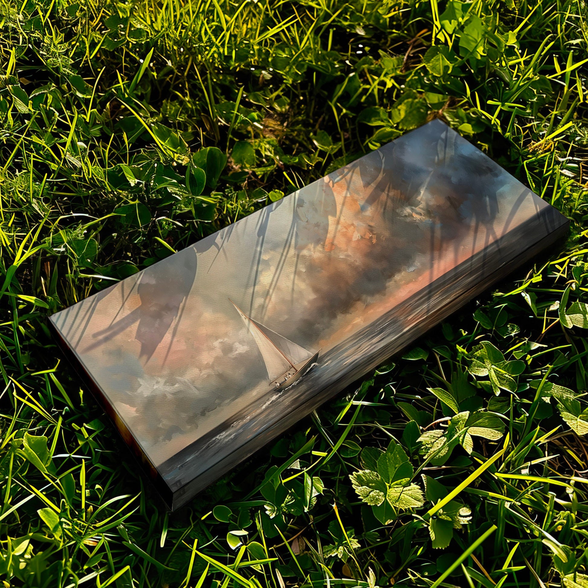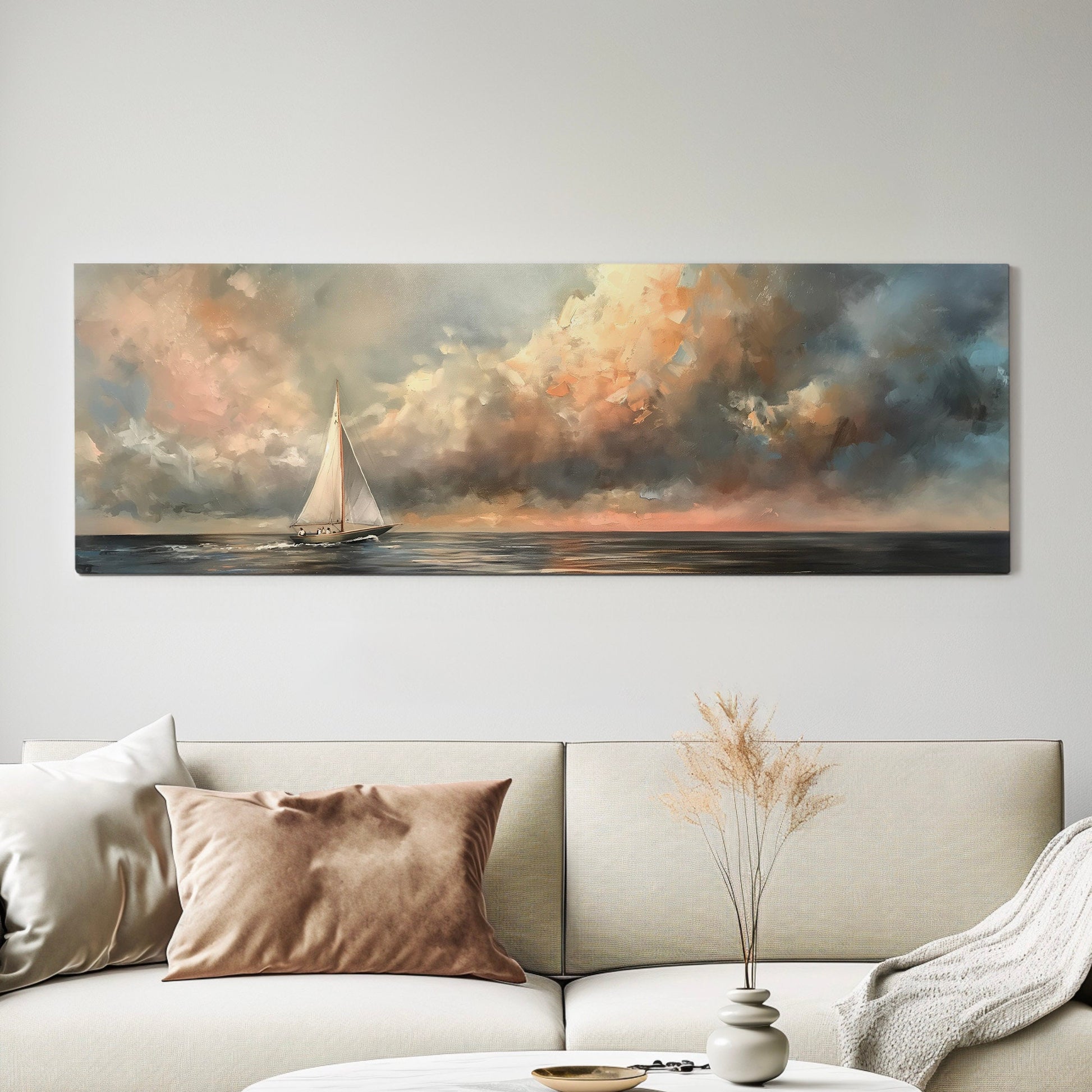 Sailing Seascape Long Horizontal Wall Art For Living Room, Panoramic Sailboat Canvas Print, Lake House Decor Canvas Art