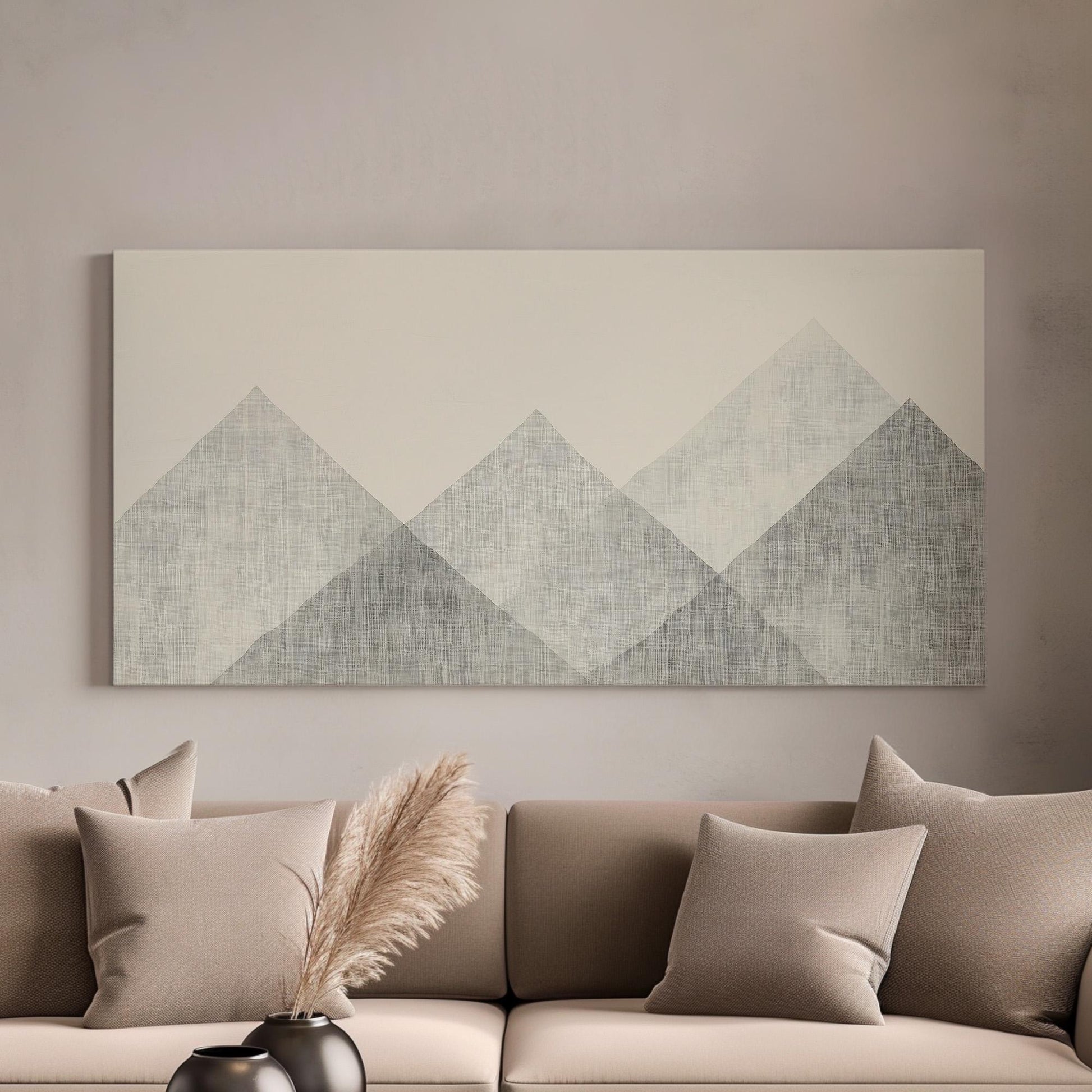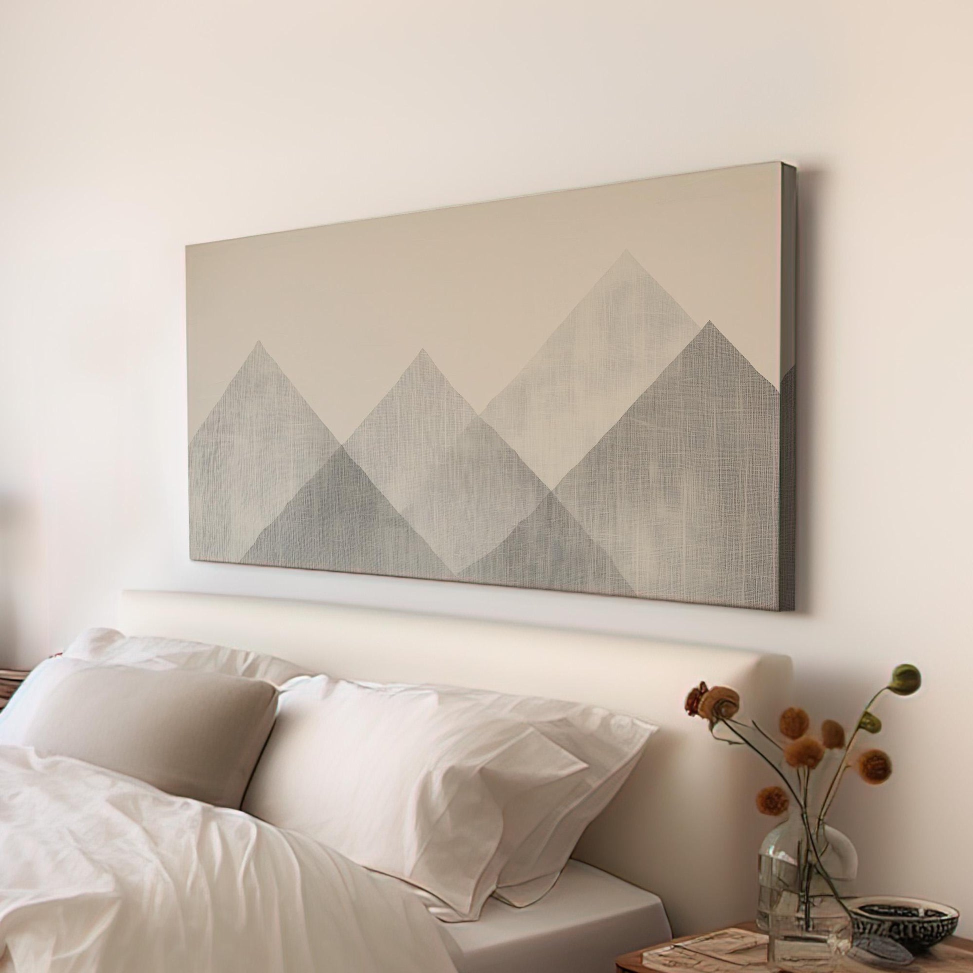 Silent Peaks Wall Art For Bedroom, Horizontal Abstract Mountain Canvas Print, Monochrome Decor Canvas Art
