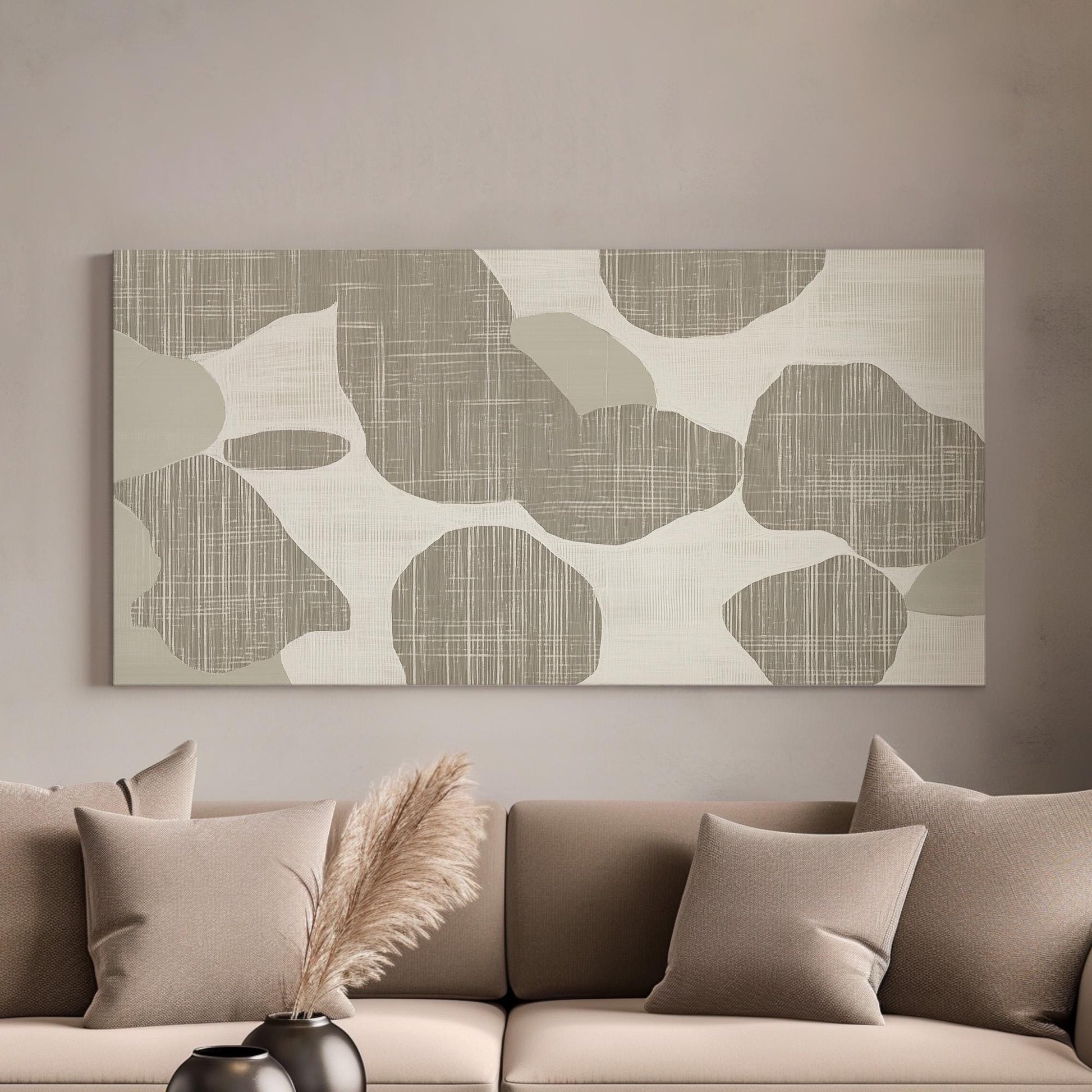 Stone Flow Wall Art Above Bed, Horizontal Organic Stone Canvas Print, Earthy Tones Decor Canvas Art