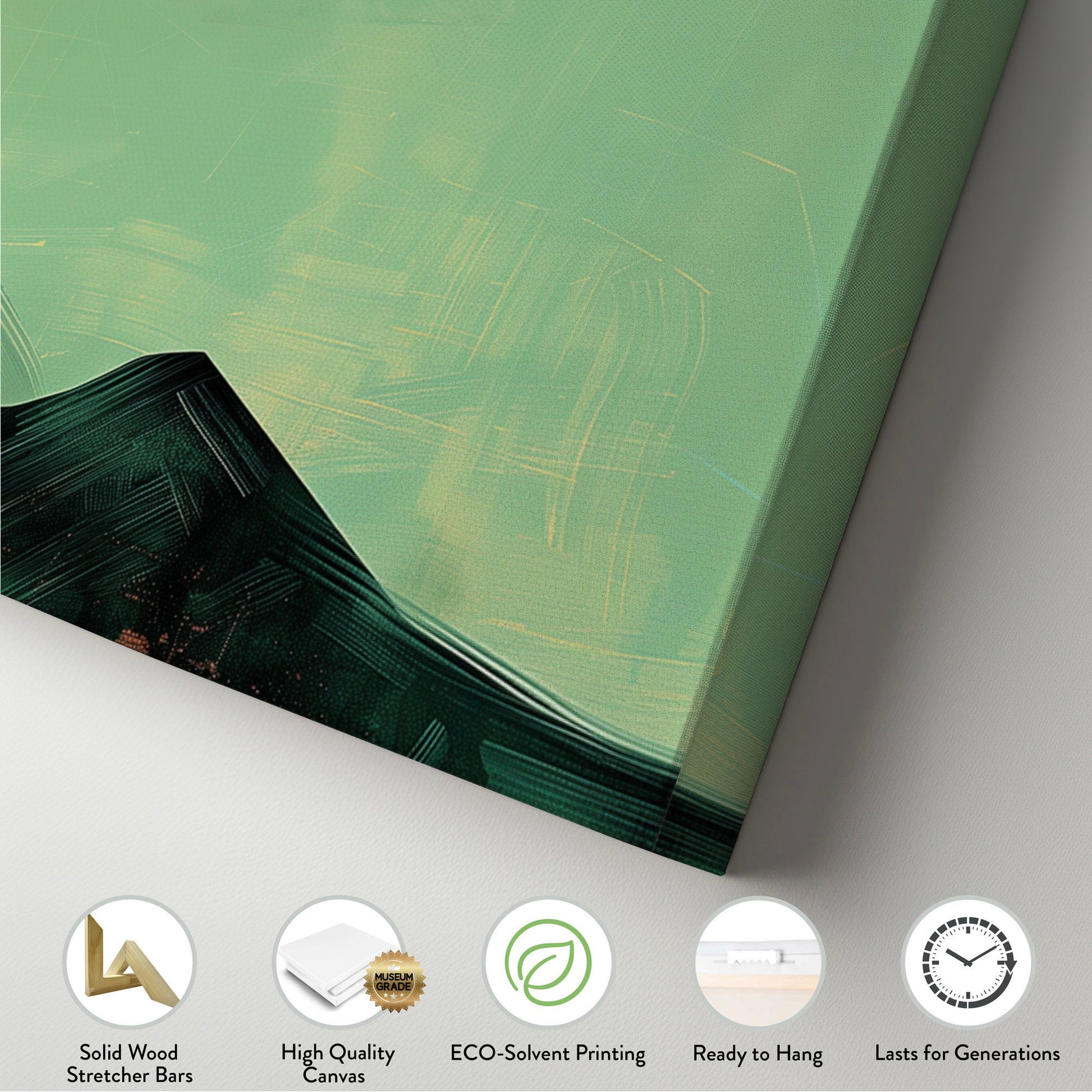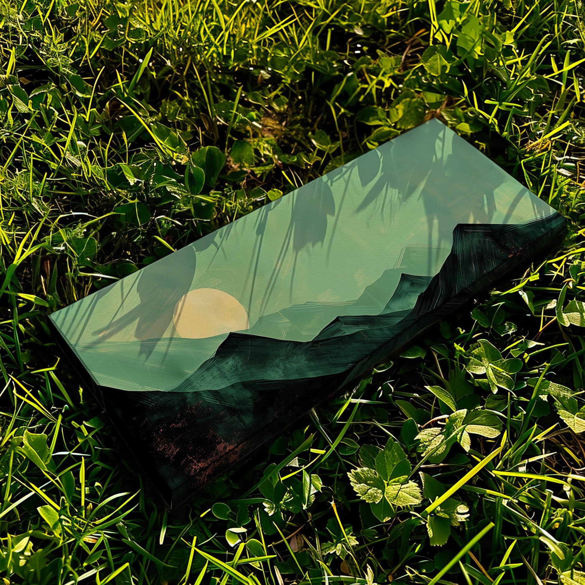 Sunrise in the Mountains Long Horizontal Wall Art For Bedroom, Panoramic Moss Green Canvas Print, Minimal Asparagus Decor Canvas Art