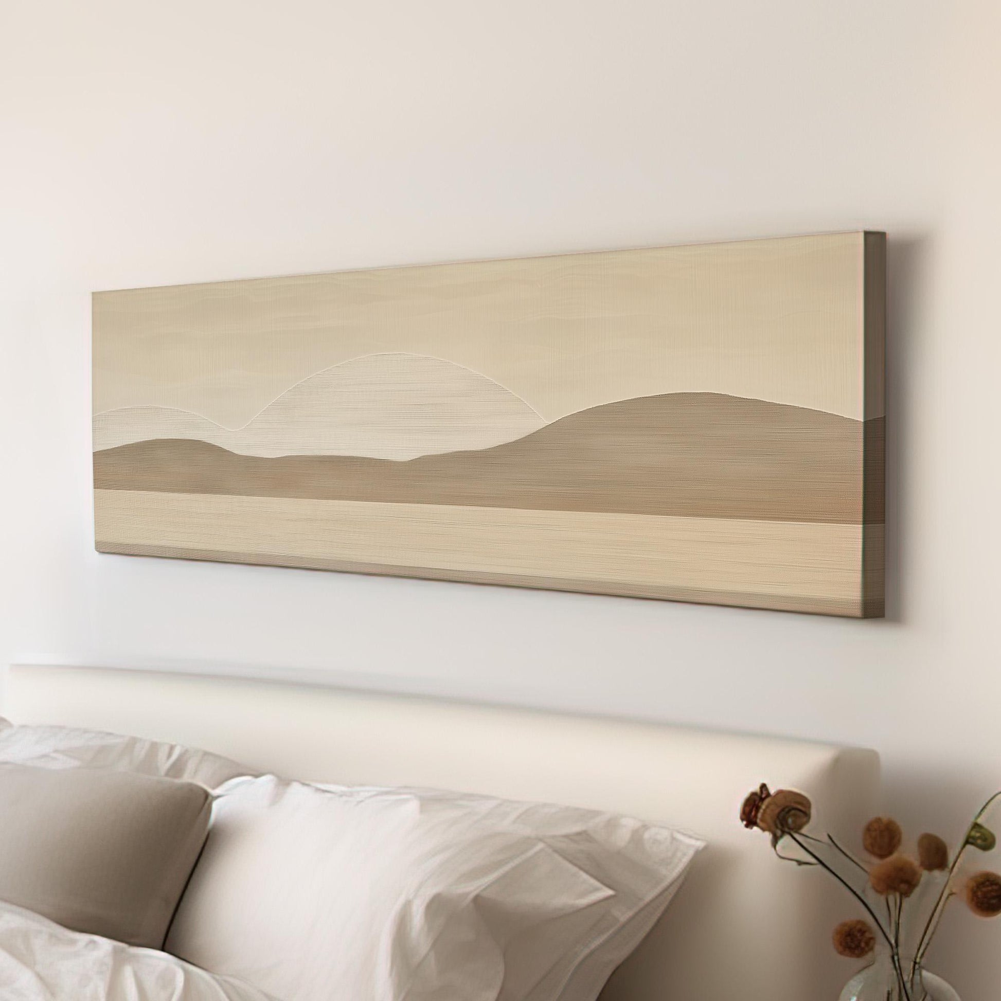 Tan and Cream Abstract Landscape Panoramic Art Above Bed, Canvas Warm Neutral Wall Art Print, Soft Earth Decor Canvas Art