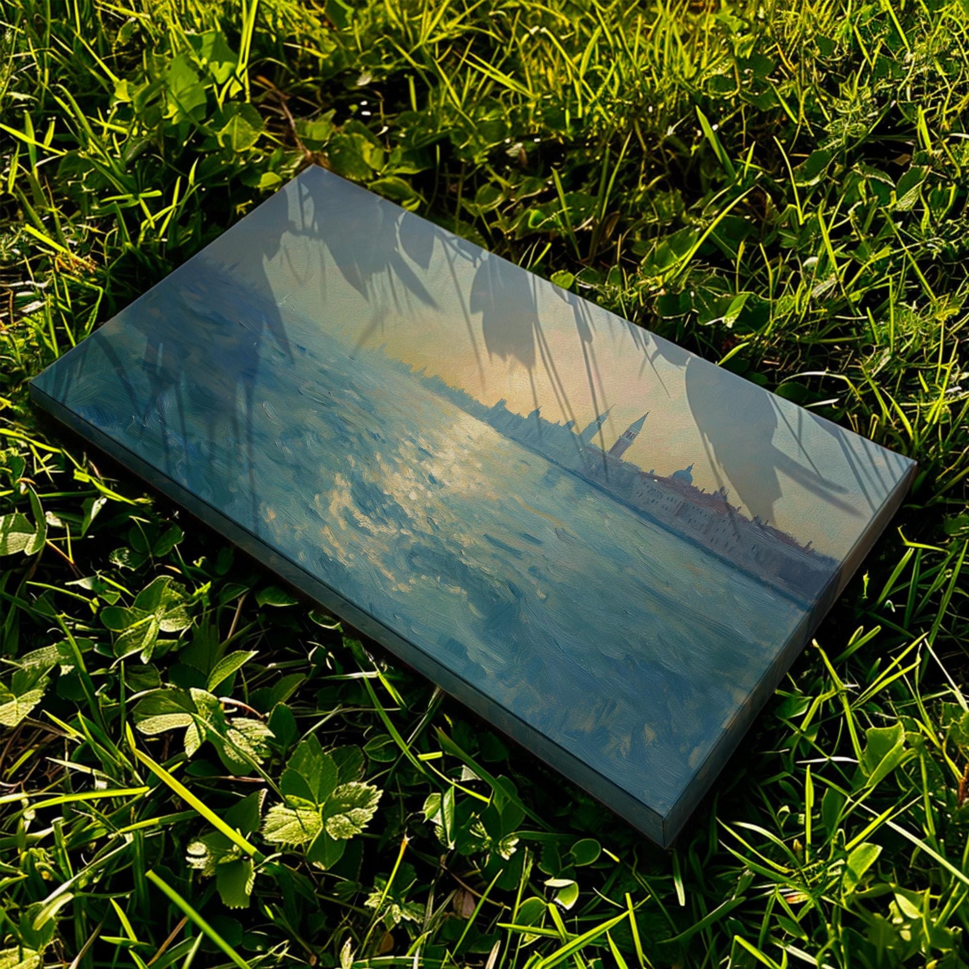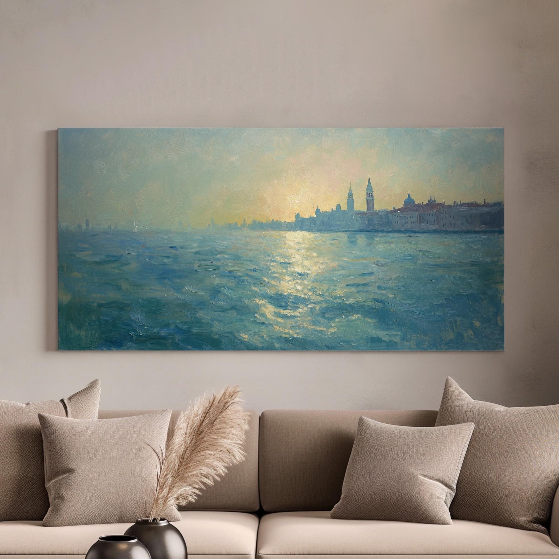 Venice Blue Seascape Wall Art For Living Room, Horizontal Clear Sky Canvas Print, Mediterranean Decor Canvas Art