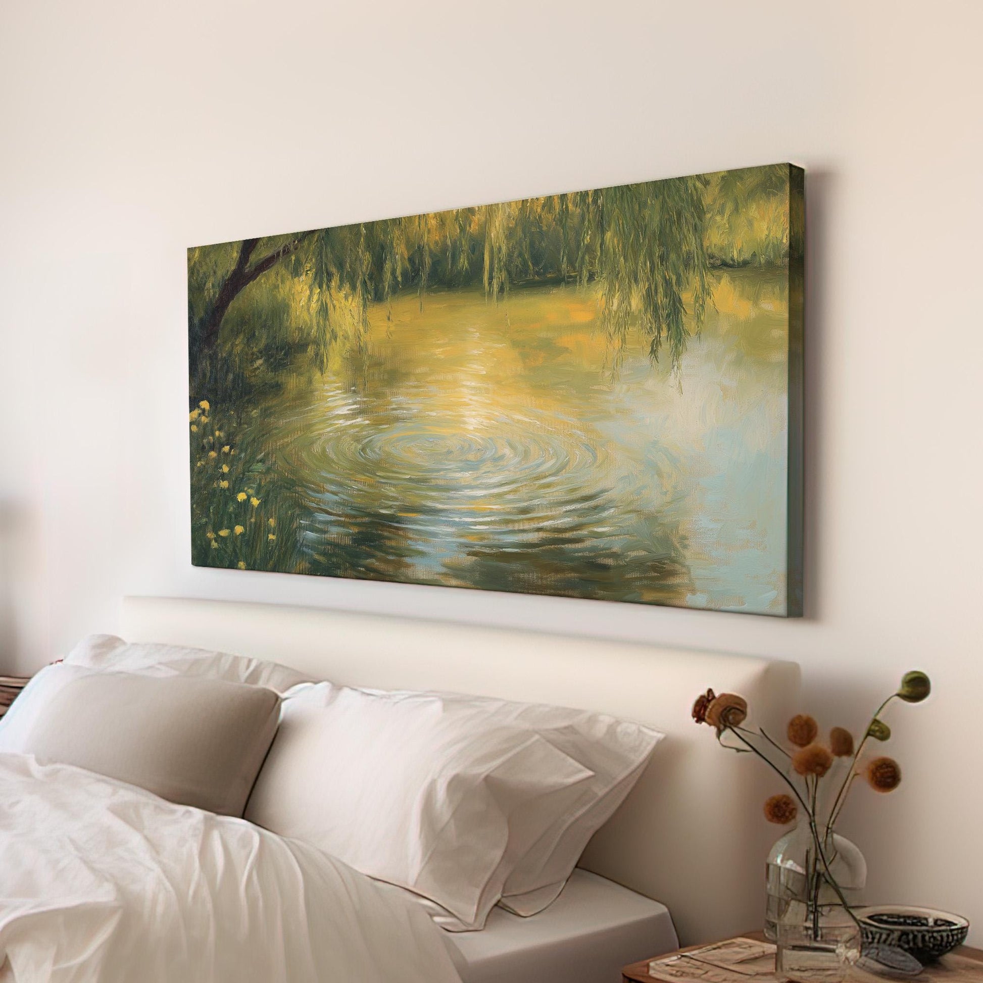 Water Ripples Canvas Wall Art For Living Room, Landscape Quiet Pond Canvas Print, Tranquil Large Canvas Art