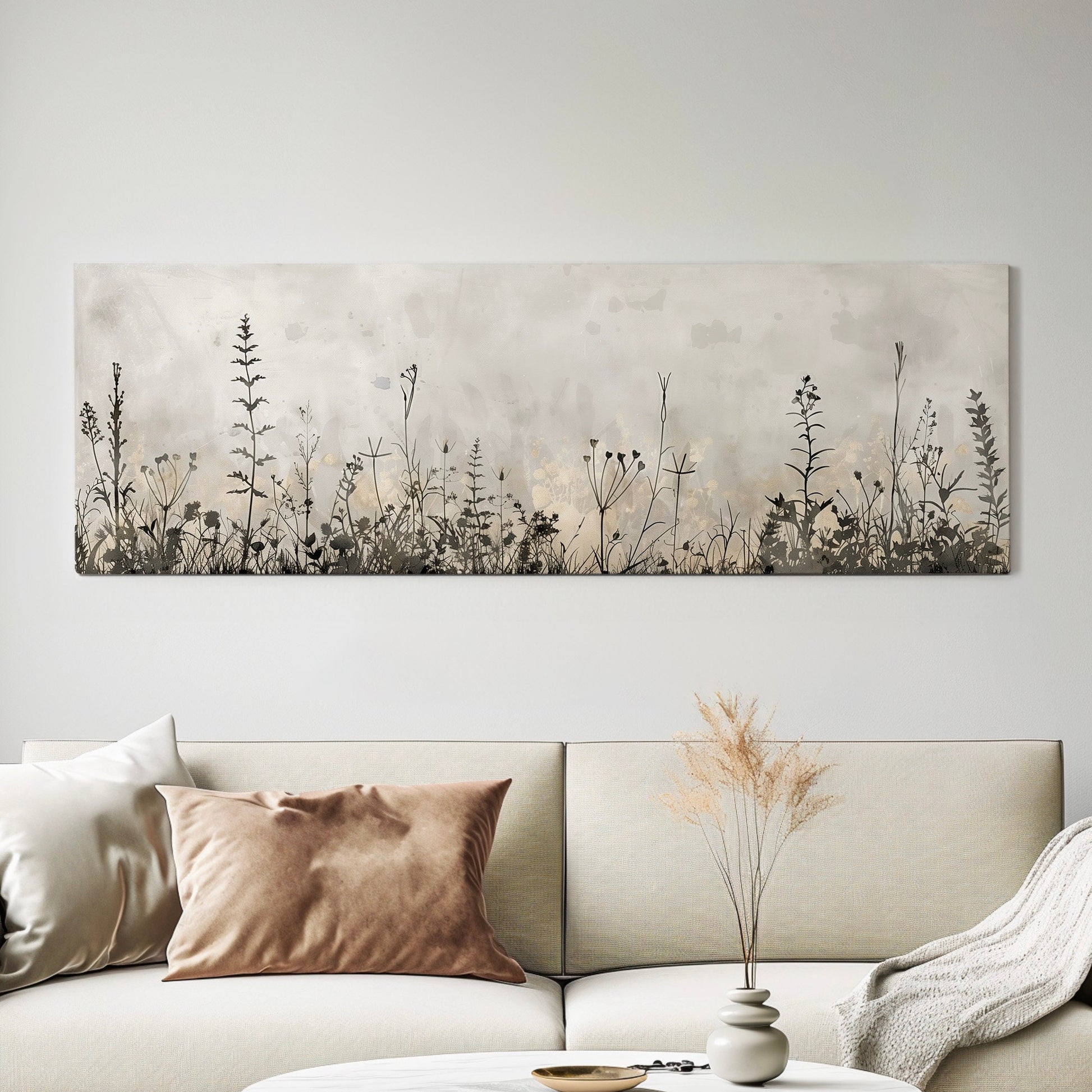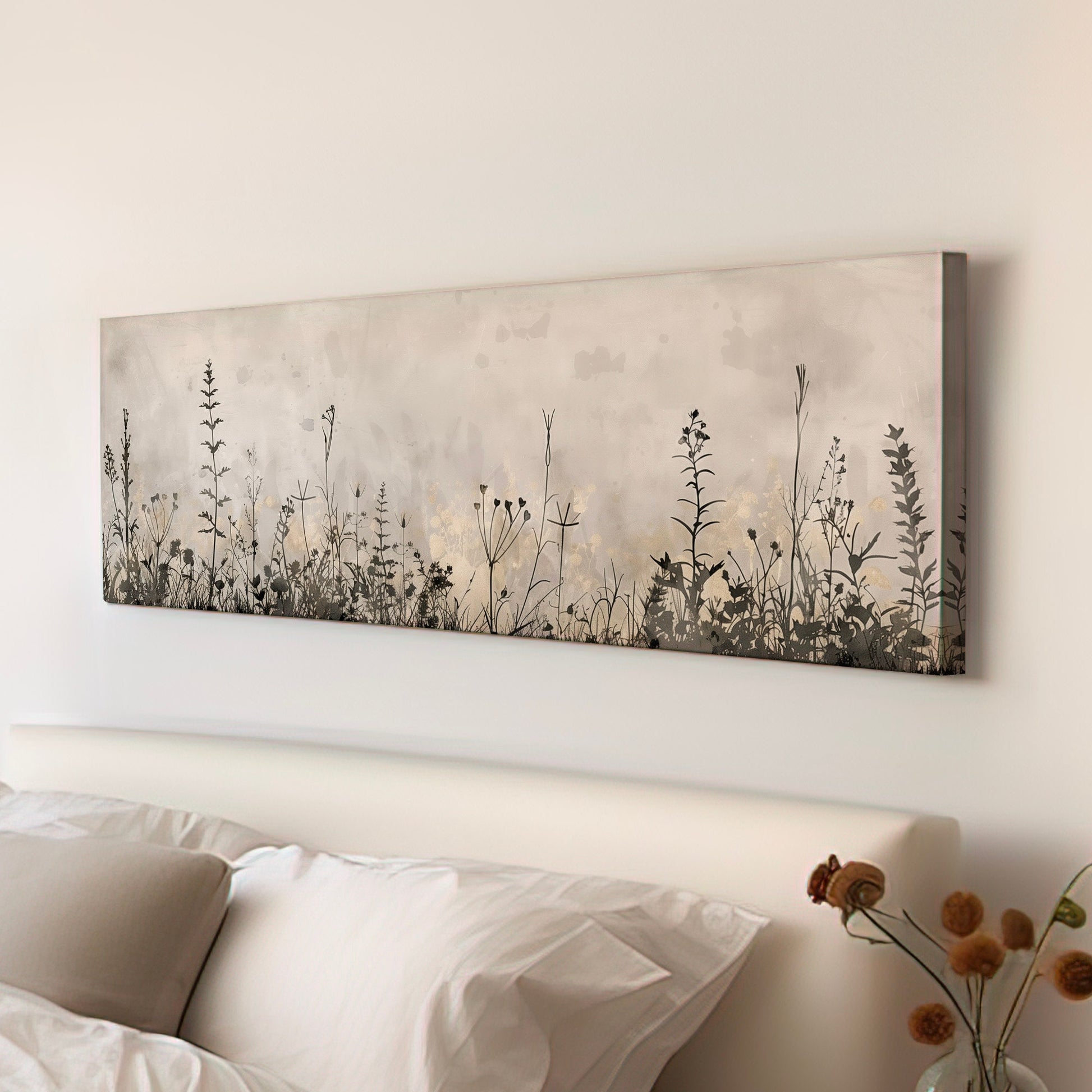 Wildflower Field Long Horizontal Wall Art For Living Room, Panoramic Floral Canvas Print, Farm House Decor Canvas Art