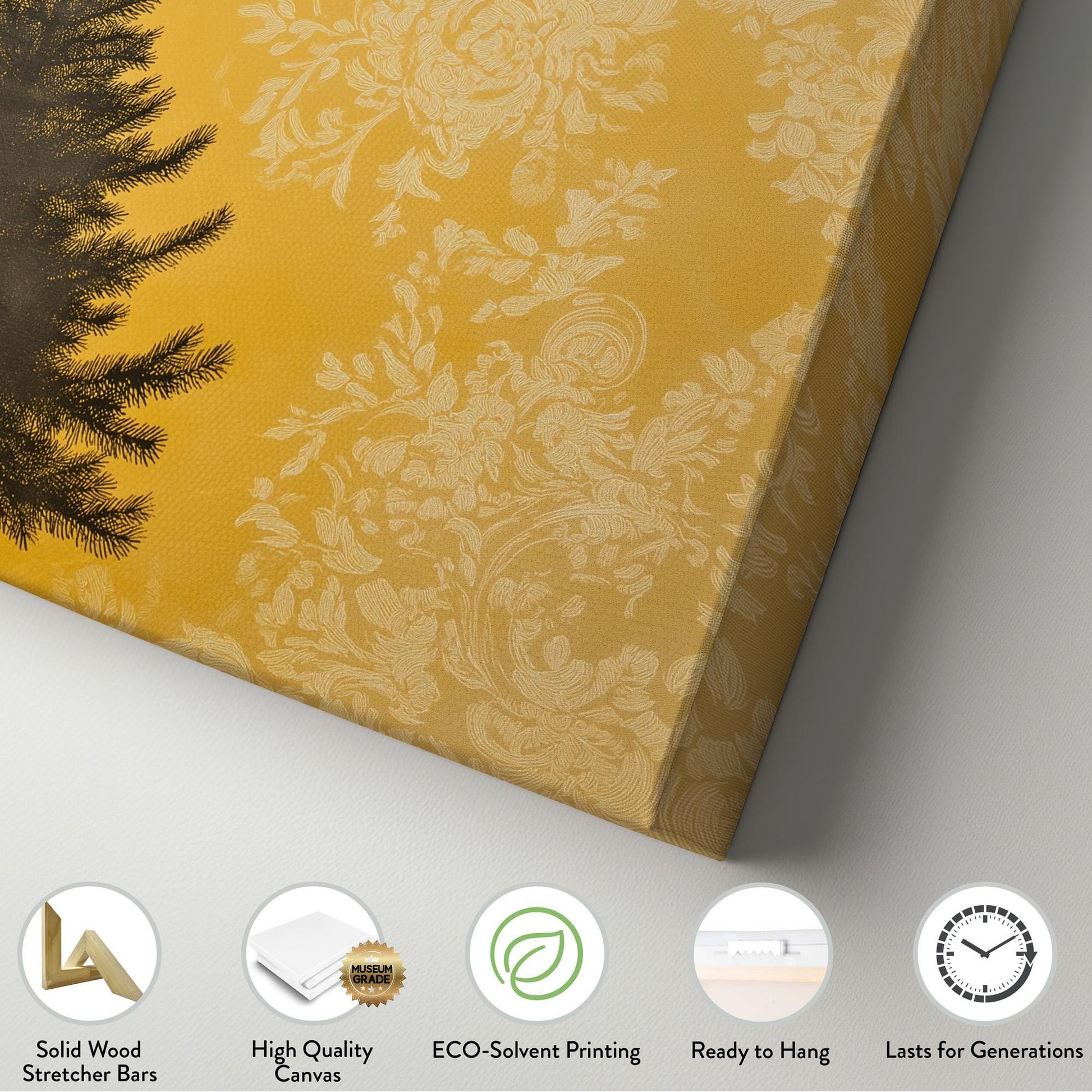 Yellow Floral Pine Tree Canvas Wall Art For Living Room, Landscape Winter Canvas Print, Farmhouse Large Canvas Art